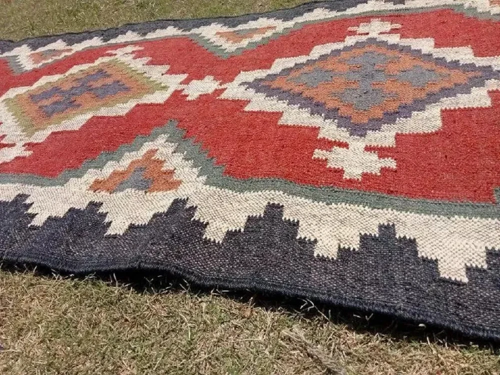 Pattern: Geometric Shape: Rectangle Color: Red Material: Wool Jute diffrent names: wool kilim rug tribal kilim rug jute rug 9x12 chunky wool jute Item Thickness: 0.25 in Model: handwoven additional search name: boho jute decor rug, 10x14 large jute rug, geometric rug other names: turkish kilim rug, navajo kilim rug, modern kilim rug additional search names: custom rug sustainable durable modern abstract bedroom area rug Seller Notes: “i am make all size runner rug you need custom size massage me” number of uses: high traffic area rug guestroom rug accent area rug Personalized: No Weave: Hand-Woven key names: high traffic area, traditional rug, gift for father handwoven rug Country/Region of Manufacture: India Pile Height: Medium Style: Southwestern key searches: kilim rug, moroccan, navajo rug, tribal rug, southwestern rug additional search: floor carpet, wall decor rug , home decor, stair rug, 4x6 rug Room: Any Room, Basement, Bedroom, Dining Room, Foyer, Garage, Guestroom, Hallway, Home Office/Study, Living Room, Lounge, Nursery, Utility/Laundry Room Theme: Totaly Handmade Item Width: Various Sizes Era: 21st Century (2000-Now) new words: kilim carpet, celling carpet, celling rug living area rug, other search: vintage kilim rug, housewarming gifts, bohemian kilim rug, Department: Kids, Teens, Adults new searches: rug, wool jute rug, kilim durrie, jute rug, kilim, bohemian rug Time Period Manufactured: 2020-Now MPN: Does not apply Regional Design: Kilim rug Nature: Natural made Beautiful design and earth friendly Type: Area Rug Handmade: Yes Care Instructions: Spot Clean with dry cloth; Professional cleaning Versatile: Attractive, Unique and shaped Personalize: No Original/Reproduction: Original Pile Type: Normal Production Technique: Knotted Features: Easy to Clean, Eco Friendly, Kid Friendly, Stain Resistant, Suitable for Floor Heating, Washable Brand: Handmade Item Length: Various Sizes