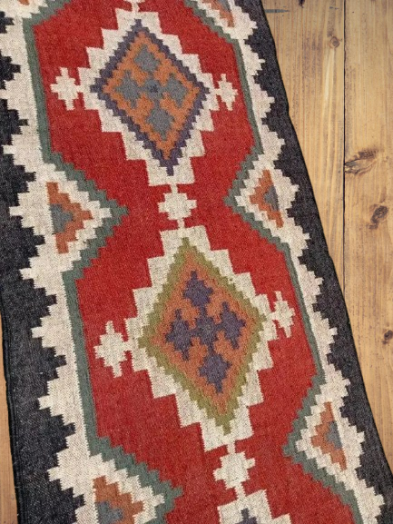 Vintage Aztec Kilim Runner Rug Wool Jute Southwestern Stair Carpet