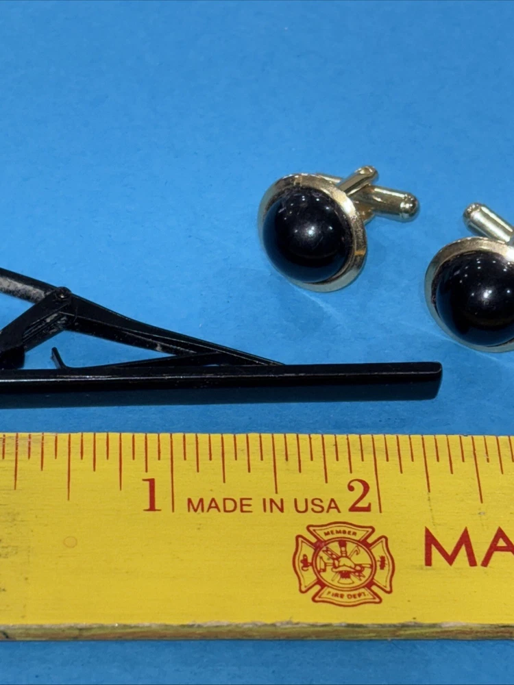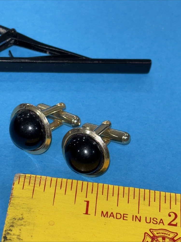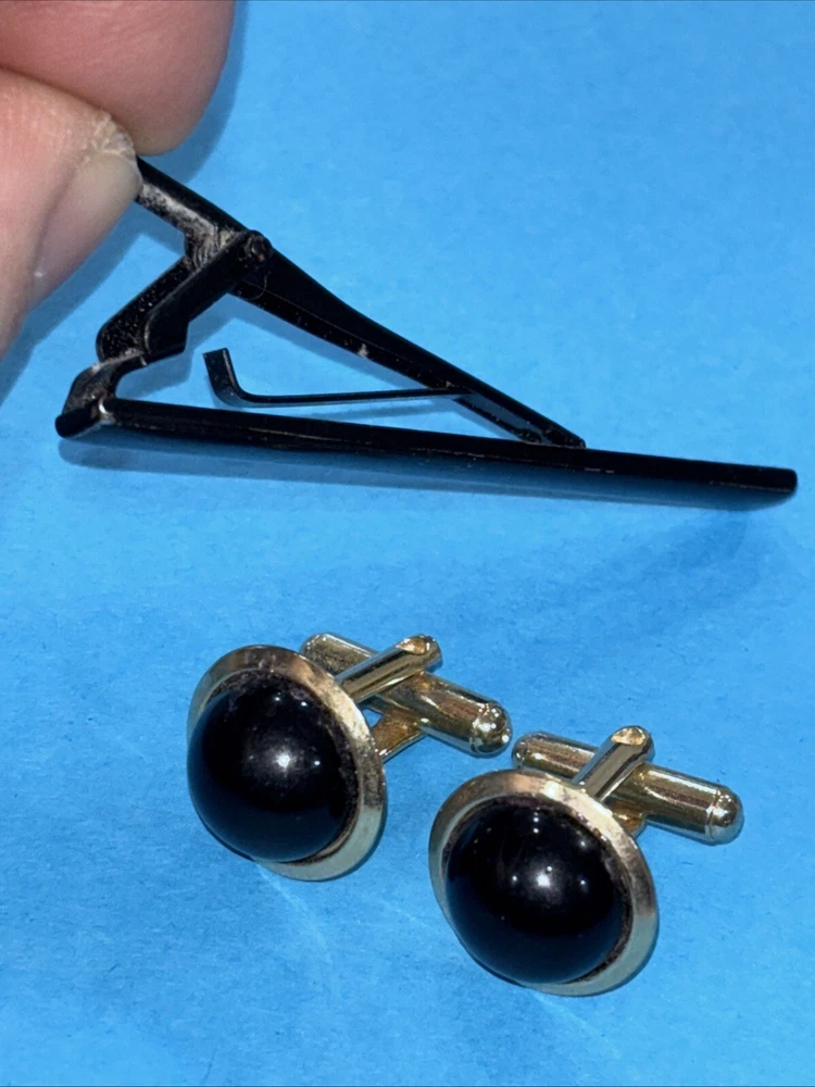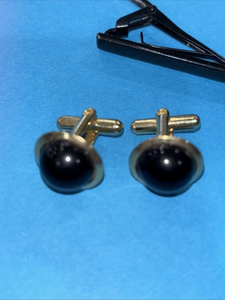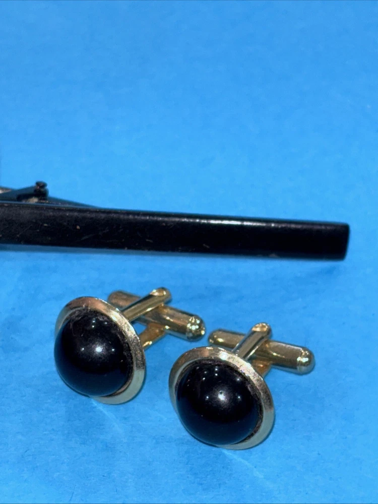 HomeVintage BLACK ONYX DOMED CUFFLINKS And Tie Clip Bar