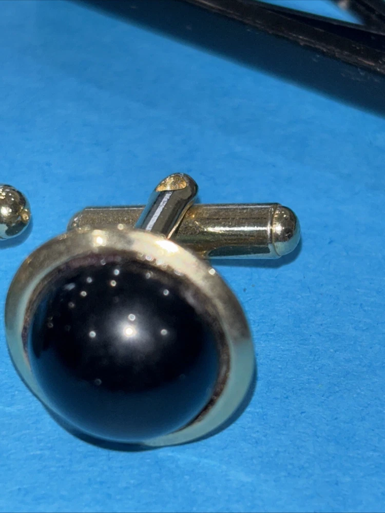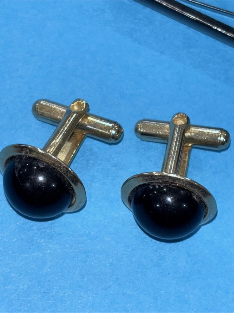Department:MenCountry of Origin:United StatesMain Stone Treatment:Clarity EnhancedHandmade:YesMain Stone Creation:NaturalMain Stone Color:BlackMain Stone:Black OnyxMain Stone Shape:RoundColor:GoldNumber of Gemstones:1Type:CufflinksSeller Warranty:YesBrand:UnbrandedCut Grade:Excellent