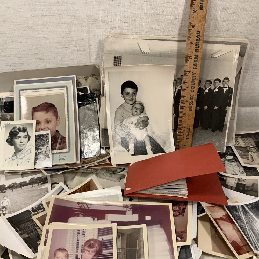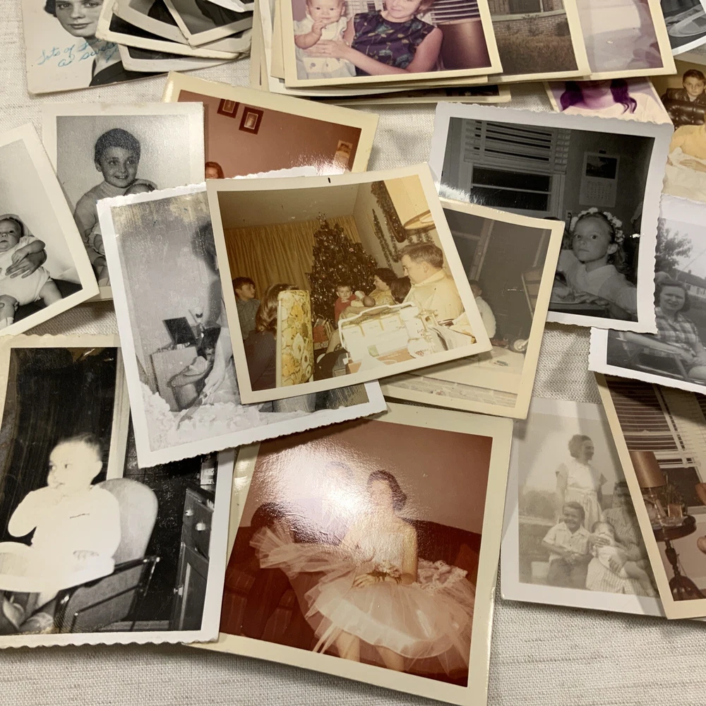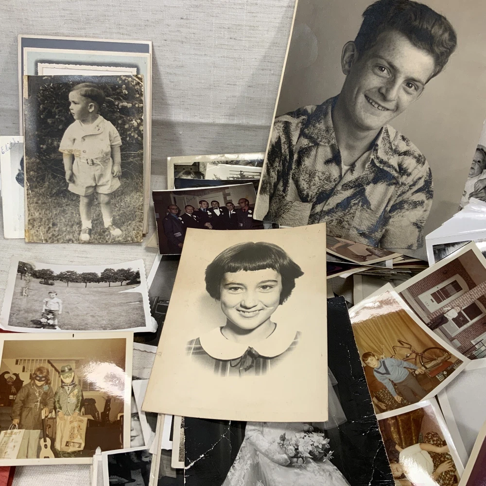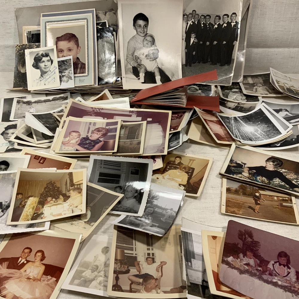 Vintage BLACK & WHITE FOUND PHOTOS Old Snapshots Antique GRAB BAG Lot RANDOM Used photos. These are old and a lot of the photos have a bow (cupped) or curve to the picture. They do noy lie flat. Some might have tears or creases. Please see the pictures. All photos in the photos are included. Some color ones are mixed in as well.