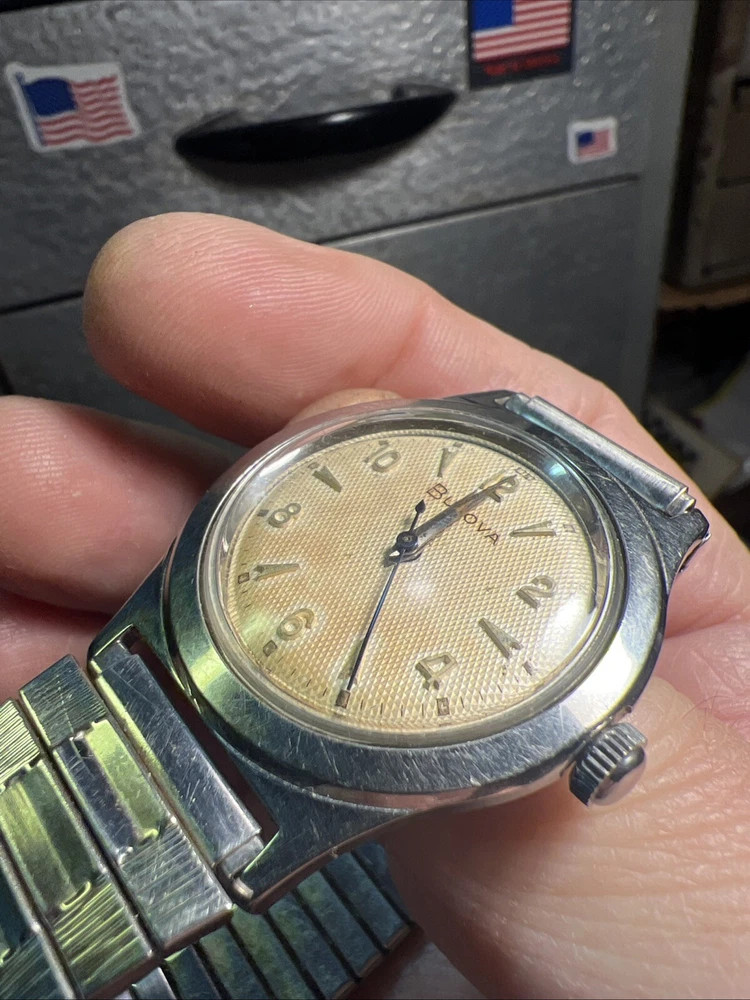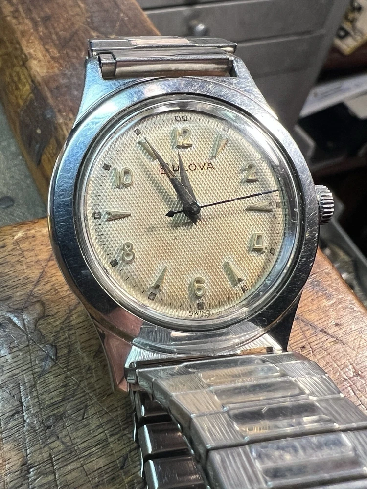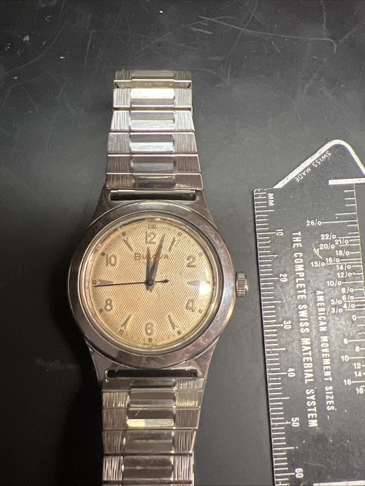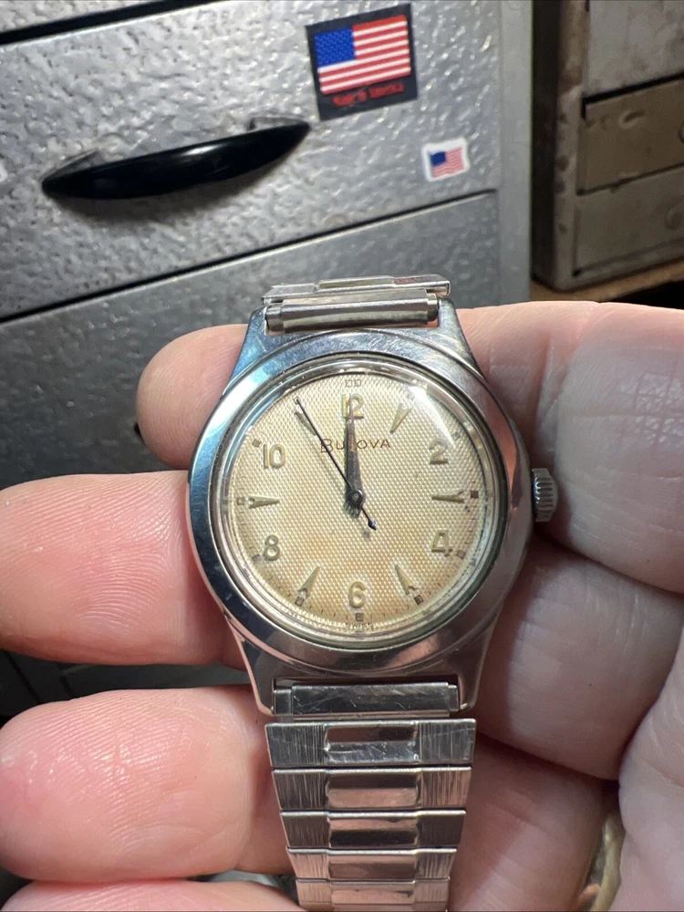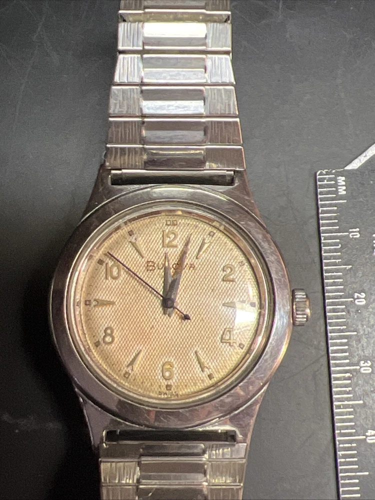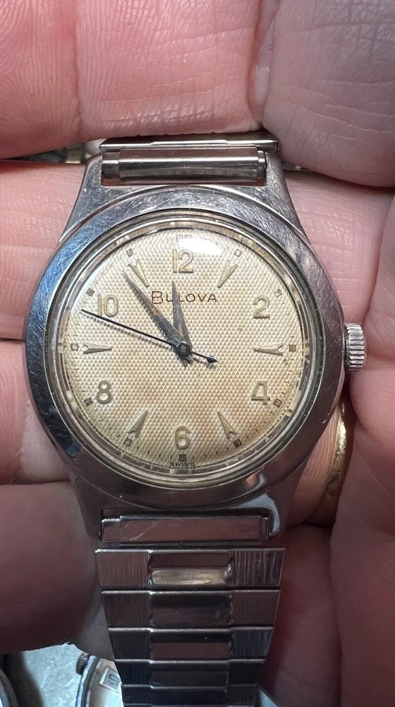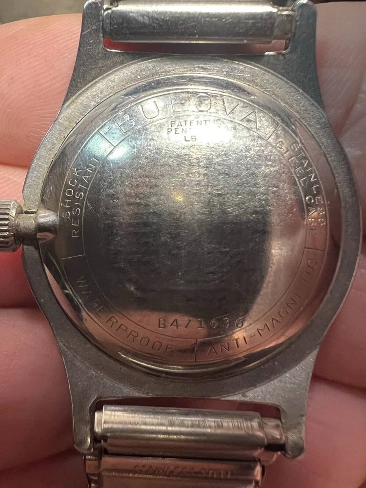 Vintage BULOVA L6 (1956) Stainless Steel Case Wind-up Men's Watch Working Well!! Flex band! Keeps good time! Nice clean case and dial face!! Has scratching on case!! As is as seen as pictured as found!! Please read below: Please review item specifics, and pictures for best details!! Please ask questions and good luck bidding! If any issue with purchase or arrival condition such as not as described, please reach out to me before posting feedback and or opening a case and I will make it right!! My wish is for you to have a happy buying experience and to enjoy my items!! Please note about vintage items. Unless marked new or new old stock, they are sold in used, as-is, pre-owned condition. Because of the age of these items they may have some wear, imperfections and signs of use, age and time… "International buyers " please note: Import duties, taxes, and charges aren't included in the item price or postage cost. These charges are the buyer's responsibility. “Please check with your country's customs office to determine what these additional costs will be, prior to bidding or buying." Shipping international via the eBay international Shipping method! ** Due to the nature of used/vintage watches, I do not guarantee long term functionality and accuracy... for best performance always have older watches serviced!! ** In regard to water resistance and or waterproof: the water resistance rating, if any, is based on the manufacturer's marking, not an actual test by me. I do not recommend using any of my used watches in submerged water environment such as swimming or shower or ocean!