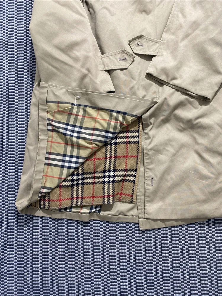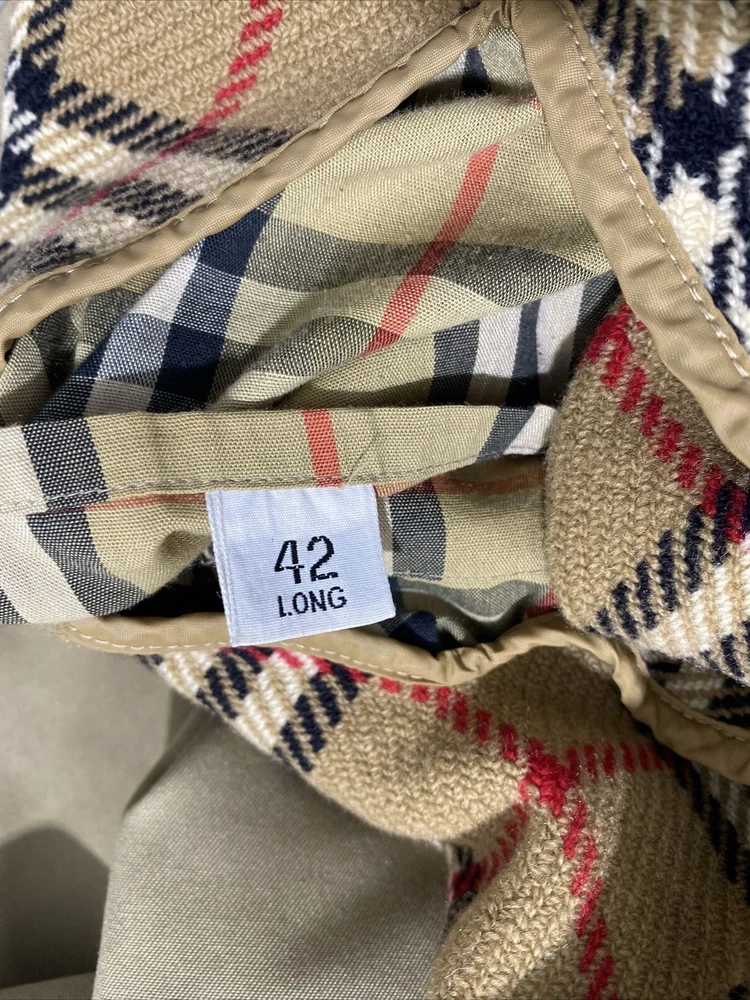 Features: Belted, Lined, Removable Collar, Removable Lining Size: 42 Style: Trench Coat Color: Beige Size Type: Regular Country/Region of Manufacture: United Kingdom Type: Coat Seller Notes: “no stains no holes no rips, measurements in photos roll, from non smoking environment SKUK0393” Garment Care: Dry Clean Only Fit: Regular Occasion: Business, Casual, Formal, Party/Cocktail, Travel, Workwear Fabric Type: Canvas Vintage: Yes Pattern: Solid Outer Shell Material: Cotton Blend Department: Men Insulation Material: Wool Brand: Burberrys Season: Fall, Winter Jacket/Coat Length: Long Lining Material: Wool