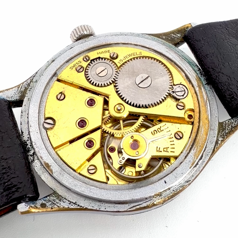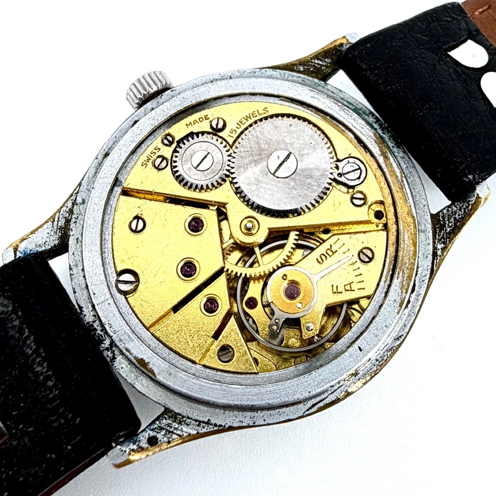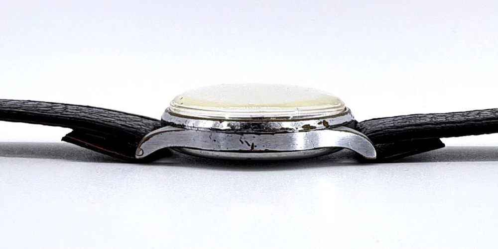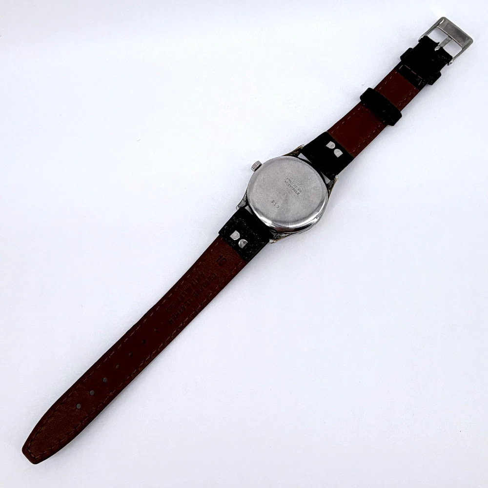 Vintage B.W.C. Suisse Manual Wind Wristwatch – c.1940s – 15J – Working Description: A handsome vintage Swiss wristwatch by B.W.C. (Buttes Watch Co.), dating to approximately the 1940s. This classic piece features a manual wind movement with subsidiary seconds at 6 o’clock and retains a beautifully aged dial with attractive patina, giving it plenty of period character. The watch is currently running well and presents nicely on the wrist. It has been fitted with a new black leather strap and is supplied in a Bowles Ltd watch gift box, making it ideal as a gift or for a vintage watch collection. Key Details: Maker: B.W.C. (Suisse) Origin: Swiss made Movement: Manual wind mechanical movement Jewels: 15 jewels Dial: Cream dial with Arabic numerals and subsidiary seconds Case: Stainless steel case back (Fond Acier Inoxydable) Strap: New black leather strap fitted Presentation: Supplied in a Bowles Ltd watch gift box Dimensions: Case width: 27.7mm including crown Case width: 25.5mm excluding crown Lug to lug: 31mm Thickness: 10.3mm Lug width: 16mm Condition: Running and operating well at the time of listing Dial shows age-related patina and spotting, consistent with age Acrylic crystal in excellent condition Case shows wear, plating loss, and marks from age and use, particularly around the bezel and lugs Case back clean with light surface wear Strap is new and unworn Summary: A charming and wearable 1940s Swiss wristwatch with honest vintage character. A great entry into vintage mechanical watches or a solid addition to an established collection. Additional Notes: Please note this is a vintage mechanical watch. While it is running and operates well at the time of listing, no guarantee is given regarding timekeeping accuracy, power reserve, or long-term reliability. Vintage watches are sensitive to shock, magnetism, and moisture, and may require servicing to perform to modern expectations. The service history of this watch is unknown, therefore we recommend a service be carried out to ensure long-term reliability. This watch is sold as a vintage collectible item rather than a modern timepiece. As usual, this item will be packaged carefully and dispatched with tracking. International shipping is available through the eBay Global Shipping Programme (GSP).