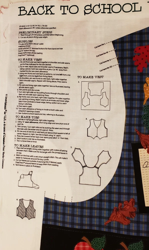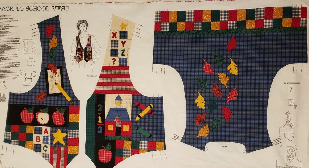 Vintage Back To School Fall Teacher Patchwork Vest Fabric Panel Sew DIY XS-L. Condition is New.