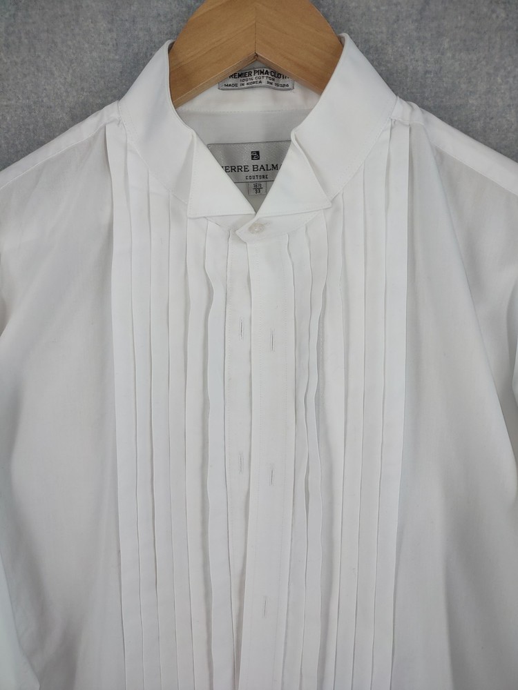 Welcome to Aspen Crossing, your destination for modern rustic western wear and refined leisure style reflecting the rugged beauty of our American West Vintage Balmain Shirt Men 16.5/33 White Plisse Tuxedo Long Sleeve Stud Button Up French Cuffs Timeless Elegant Sophisticated It is always best to compare the measurements above with a top that fits you comfortably. CONDITION - Excellent pre-owned condition with no rips or tears. Would benefit from professional pressing. All items are cleaned per EBAY standards. Not spot treated. See the photo gallery to view this items measurements and condition. SHIPPED - USPS First Class Mail unless item weight requires priority mail. RETURNS accepted, must be returned within 30 days in original condition to receive a full refund. SHIPPING AND HANDLING We ship all packages within five business days Monday through Friday except Holidays. Consolidated shipping is available for multiple purchases. Thank you for helping our planet and buying previously owned and loved items. I am grateful for your business. Enjoy! Check out our eBay store and follow us. There are new listings daily. CUSTOM SKU: Disclaimer: While we make every effort to capture the most accurate depiction of every item when photographing, colors may vary from screen display to in person therefore we cannot guarantee exact shade on any item. Message us if you have questions.