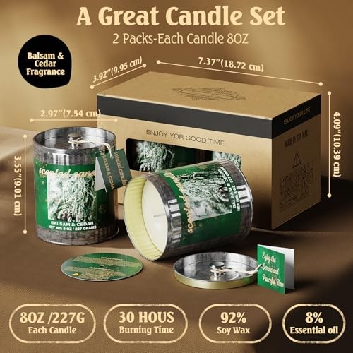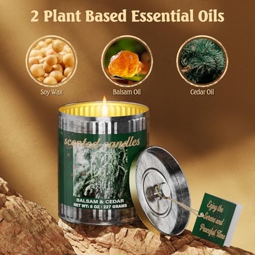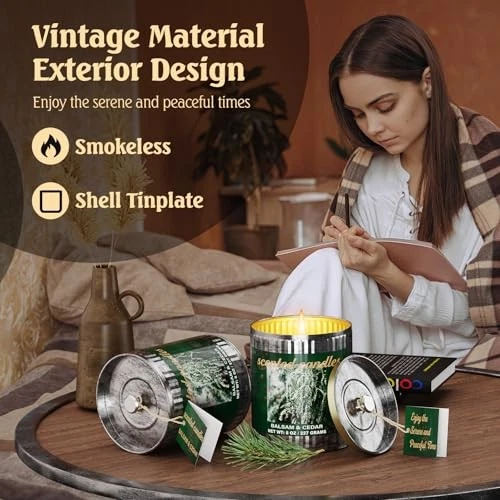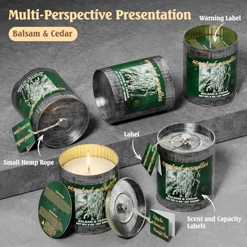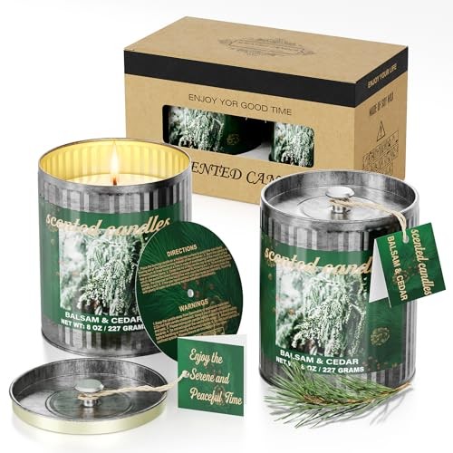 Absolutely love these candles! The balsam and cedar scent is so cozy and woodsy—fills my whole room with a relaxing forest vibe. The tins are adorable and add a nice vintage touch. Burns clean and lasts forever. Great gift idea or just to treat yourself! Fast shipping and well-packed. Highly recommend!