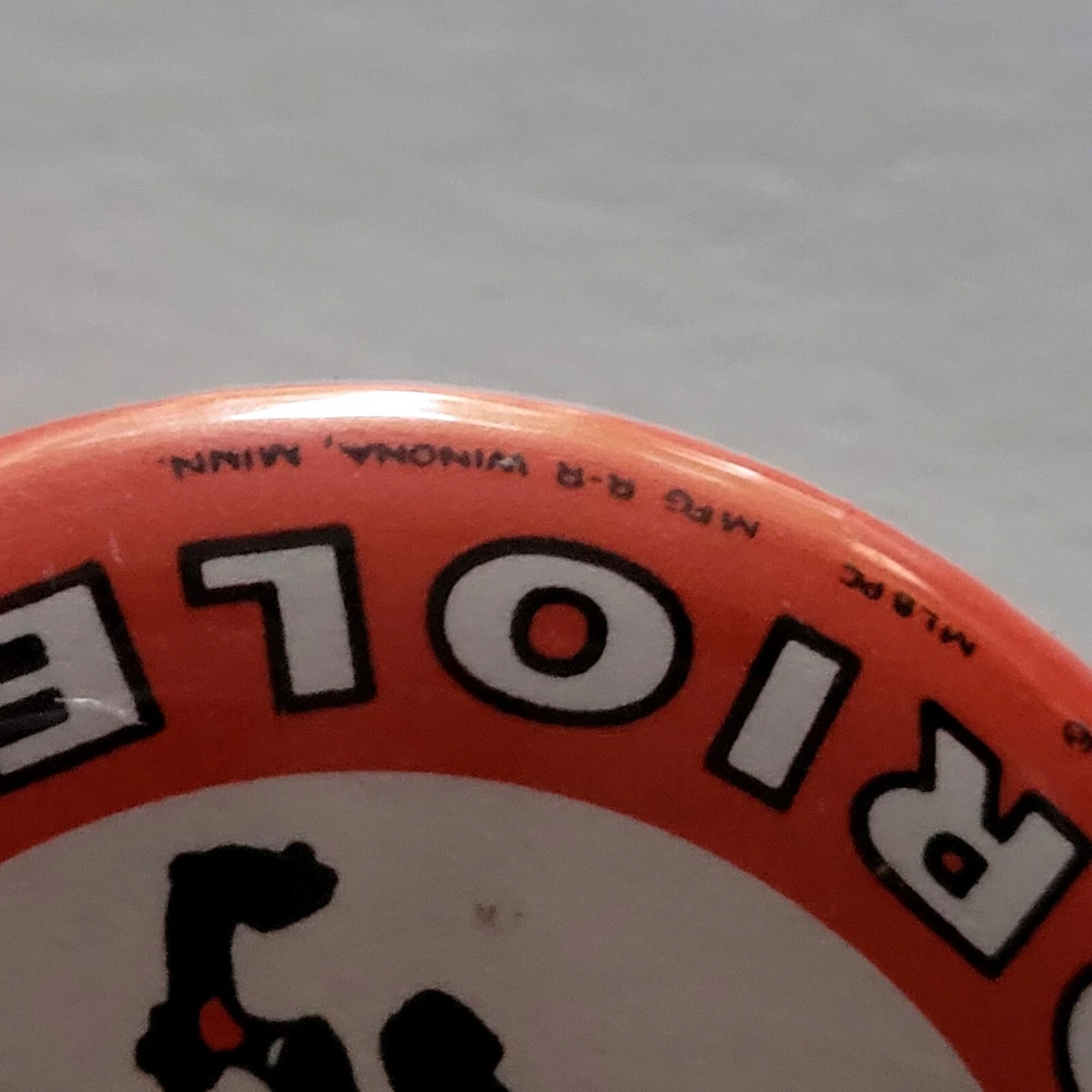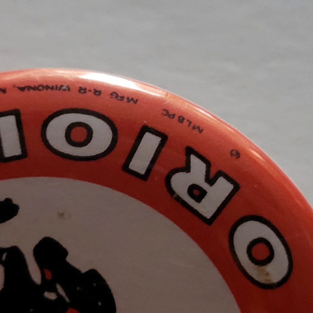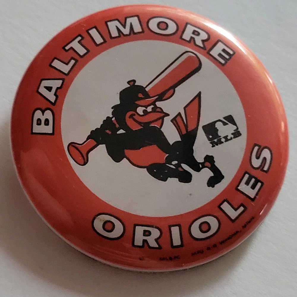 Vintage Baltimore Orioles Mascot Orange Black Bird MLB Button Pin Back Maryland. Made in the 60s-70s era in Winona, Minnesota. Little to no wear present, measures approximately 1.5 inches. Please see all photos for observation of wear.