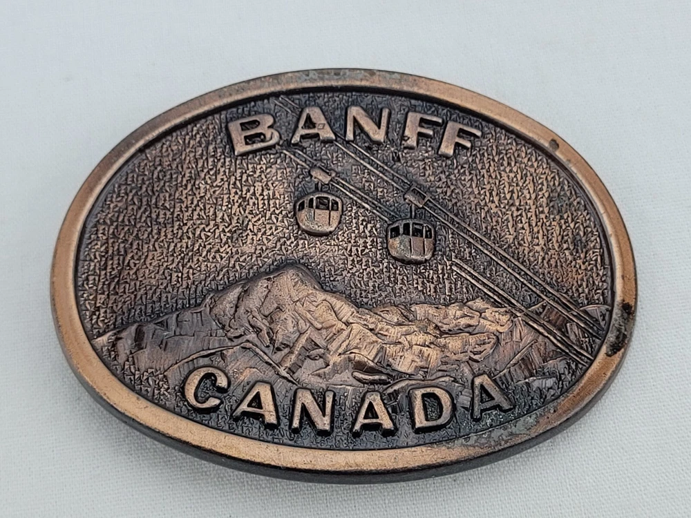 Vintage Banff Canada Gondola Belt Buckle - BB1 This belt buckle is approximately 7.5 cm x 5.5 cm. A 1.75" wide belt should fit this buckle.