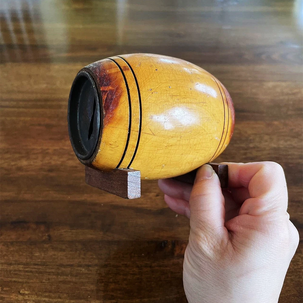 This vintage bank is a must-have for any collector of unique items. Made of wood and designed in the shape of a whiskey barrel, it is the perfect addition to any man's collection. Measuring 6 inches in length, it comes with a stand and key included. The bank is perfect for storing coins and is sure to impress anyone who sees it. The whiskey barrel theme adds a touch of nostalgia and makes it a great conversation piece. Made in an unknown country/region of manufacture, this bank is a rare find and a great treasure for any collector.
