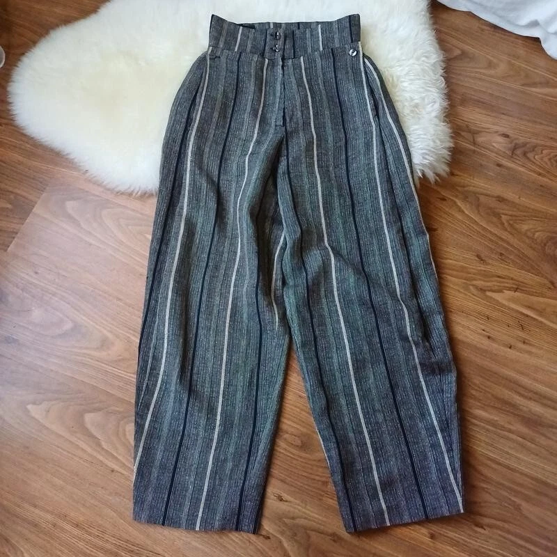 Vintage Clothing Collection 🌟 Celebrate Style with Our Vintage Clothing Collection 🎁 Measurement: Beautiful Trousers With A Raisin Made Of Linen And Gold Thread In A Stripe, Which You Are Unlikely To Find (A Find), Perfect Condition Step into Our Store, where fashion meets history and every piece tells a story. From the sophisticated 1920s to the bold 1990s, our carefully curated selection of vintage clothing is designed to elevate your wardrobe with timeless flair. Each piece is handpicked for its quality, charm, and ability to bring iconic styles back to life. πŸ‘— Discover Timeless Classics: ✨ Glamorous evening gowns that make every occasion unforgettable. πŸ§₯ Sharp tailored blazers that redefine everyday elegance. πŸ‘– Vintage denim that blends seamlessly with modern trends. πŸ‘• Retro tees that add a playful touch of nostalgia. πŸŽ€ Why Choose Vintage for Gifting? πŸ’Ž Unique & Personal: Each item is one-of-a-kind, making it the perfect gift for someone who values individuality and timeless style. 🌱 Eco-Friendly Choice: Gift sustainably by supporting ethical fashion and giving new life to cherished pieces. πŸ’– Meaningful Keepsakes: Vintage clothing carries stories and creates lasting memories for every occasion. πŸŽ‰ Whether you’re shopping for a birthday, anniversary, or simply to treat yourself, our vintage clothing collection offers something special for everyone. Celebrate timeless style, sustainability, and individuality with a gift or wardrobe upgrade that stands the test of time. Visit us today and discover the charm of vintage fashion! 🌹