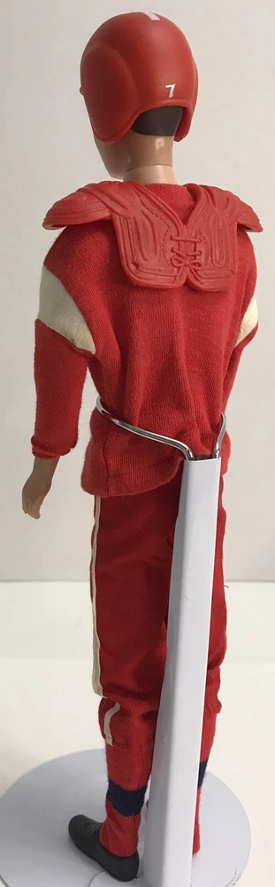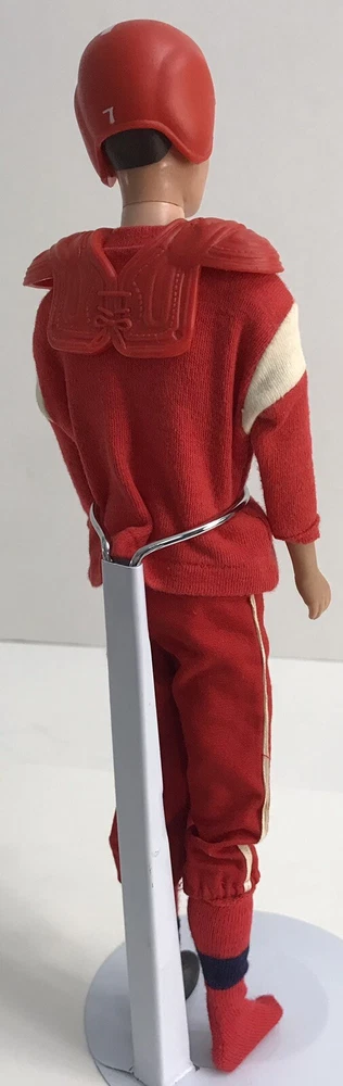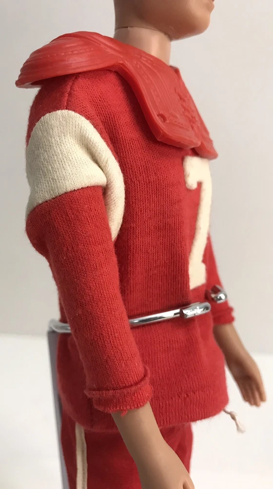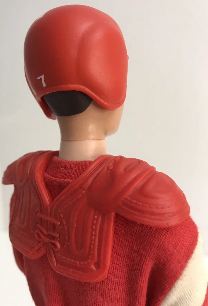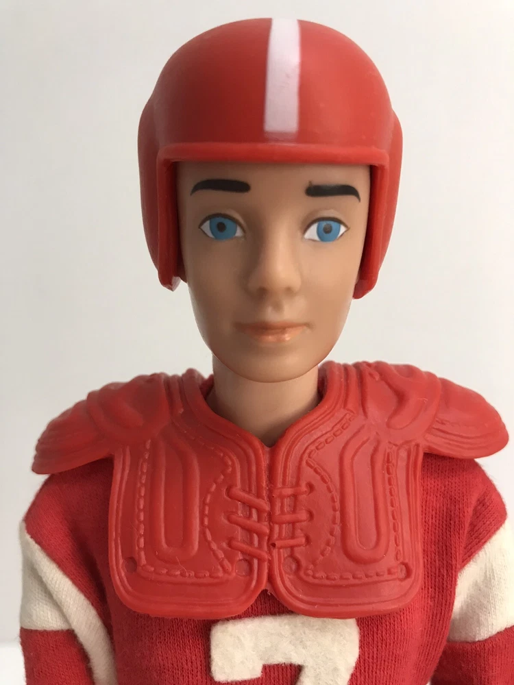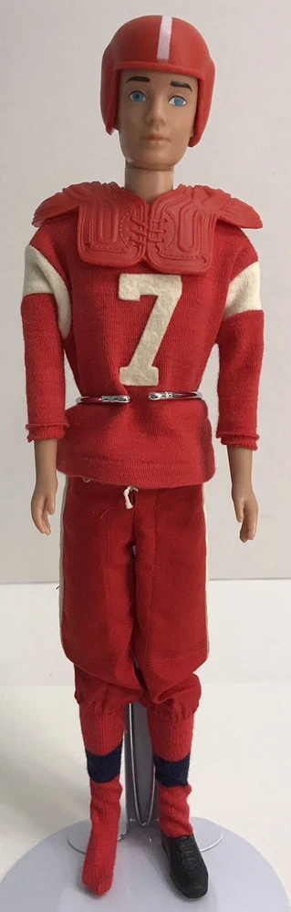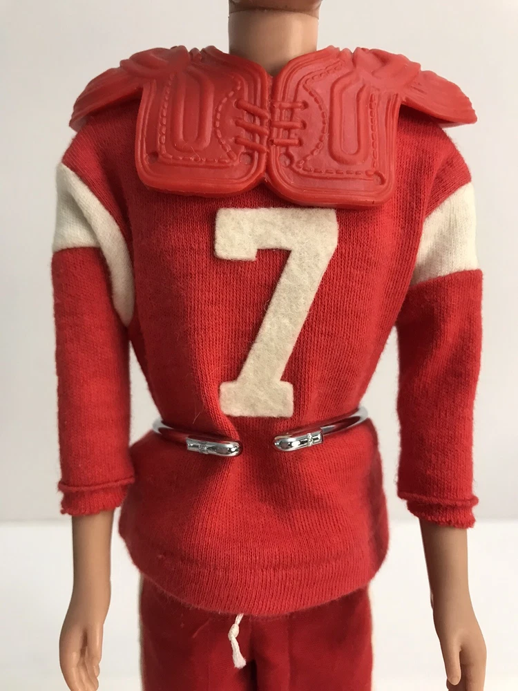 Vintage Barbie 1960 Straight Leg KEN DOLL W/ 799 TOUCHDOWN *Read* Includes Ken doll. The outfit comes with helmet, pads, jersey, pants, socks, one cleat, and football. The jersey shirt has some small pin size holes. The Ken doll has some discoloration on his hands. Ken is missing some paint for his hair. Please see photos for all condition details.