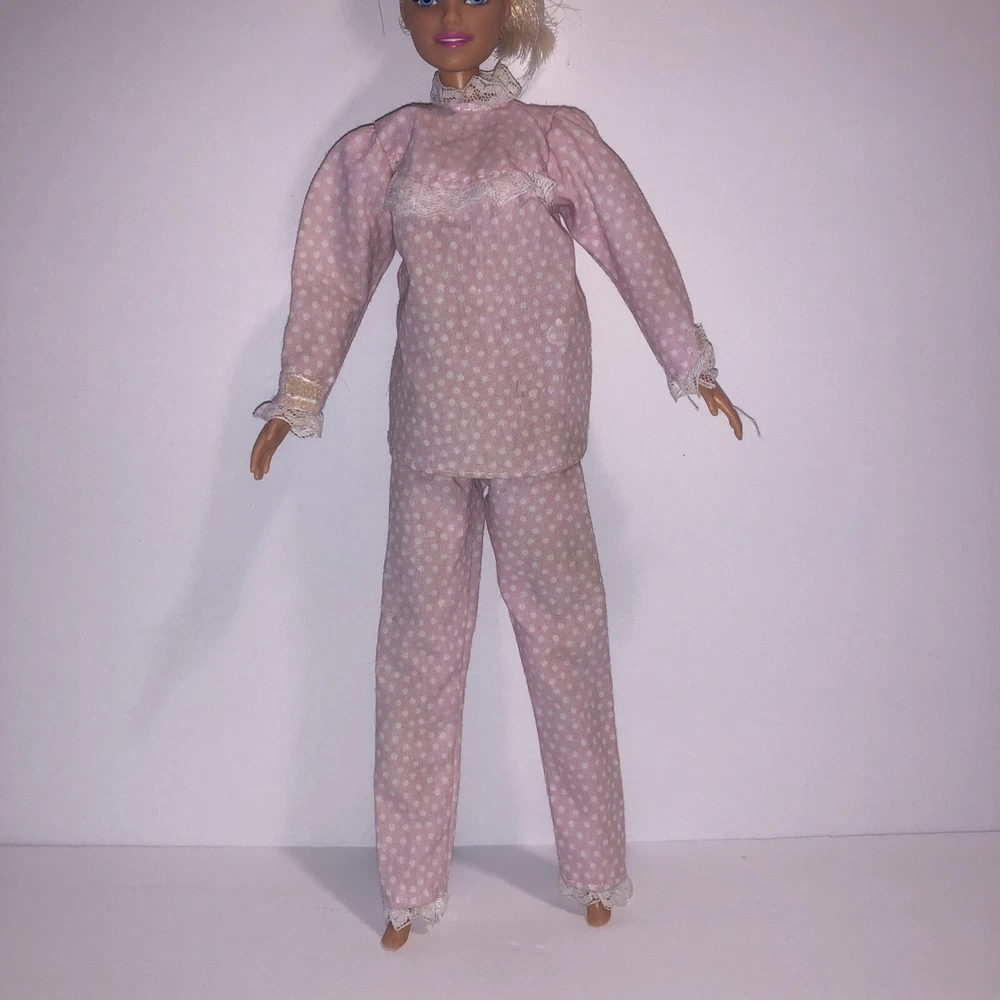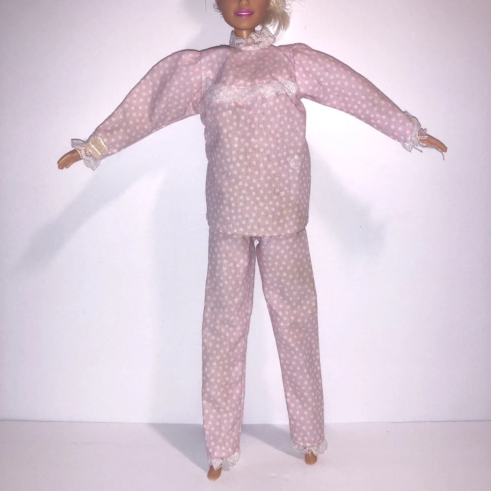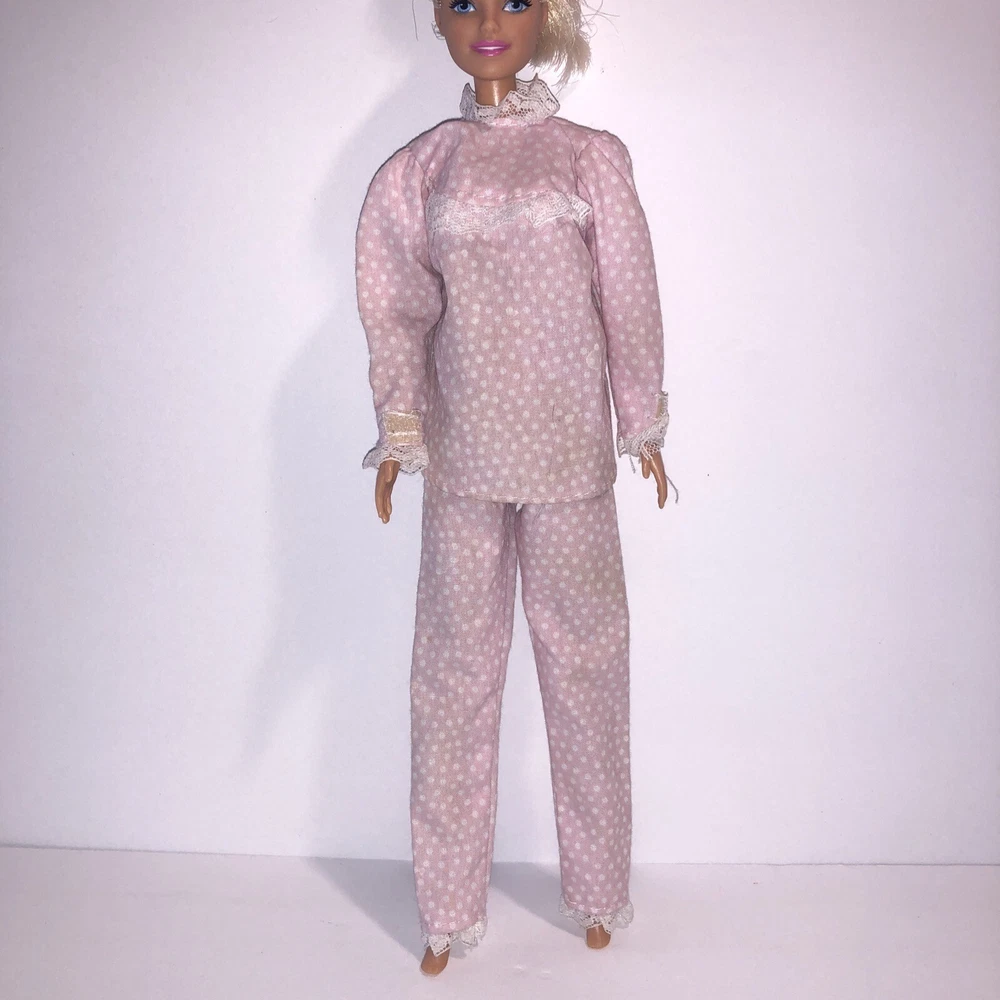 ******PLEASE READ AND SEE PHOTOS****** This is a very cute Pink Polka-Dot pajama set. This is in very good condition. I can't see any damage or stains. It has a little piece of Velcro on each of the wrists like it might have held a stuffy or something. I'm not 100% positive that this is Mattel or Vintage, I couldn't find anything matching it in a google image search. A couple things came close, I'm pretty sure this is meant for Barbie, it fits her well and its made well, but again I could be wrong. I am not an expert , by any means, my definition of GREAT or GOOD condition could vary from someone else . All the Detail I have is from my experience of being a mom , or what I could find doing a QUICK google search . But I WILL do my best. I am always open to learning so if there is Something big that I have missed Please let me know . I DO COMBINED SHIPPING and I try to hit the post office every Monday, Wednesday, and Friday . Item(s) will be shipped the day after payment is made.! I live in a VERY RURAL area , on the base of a mountain, 35-40 minutes away from the city and the Post Office. I do my best to get the SHIPPING COST as low as possible but it might be a little higher then someone that lives in a city, SORRY :( I SHIP with USPS Ground in most cases, unless otherwise marked. Thank you for looking and if you read all of this and made it this far, I hope you have a great day!! :) HAPPY BIDDING Could be vintage or Barbie not 100 fits Barbie maybe fashion doll