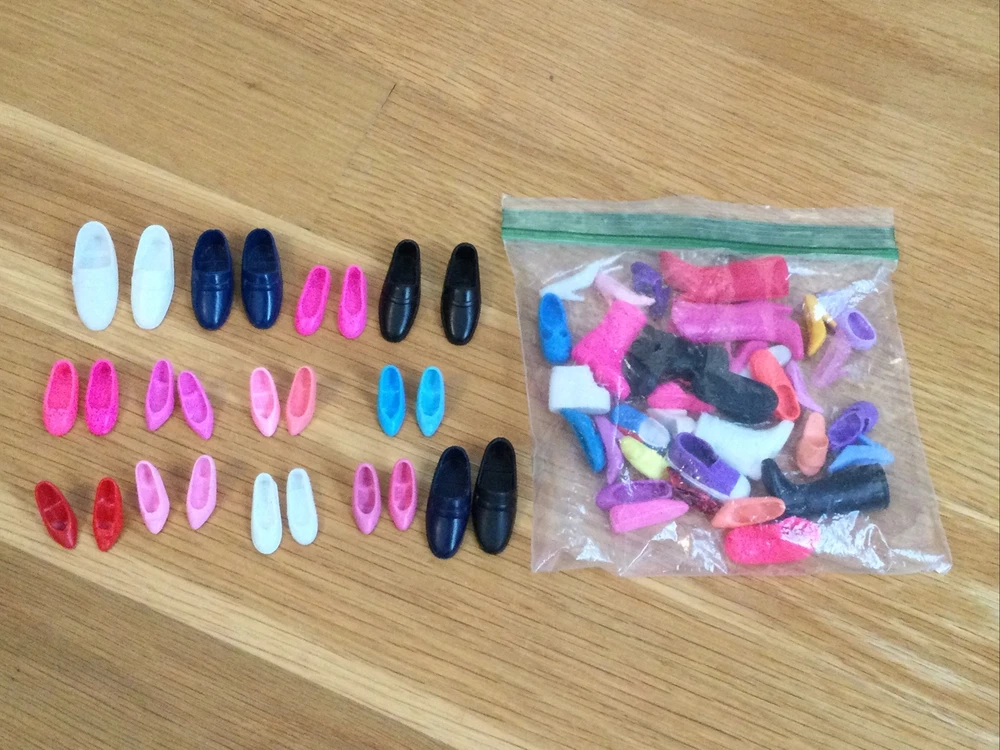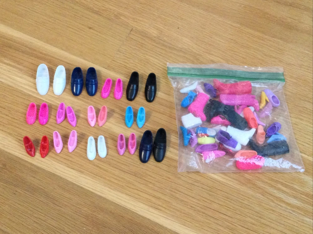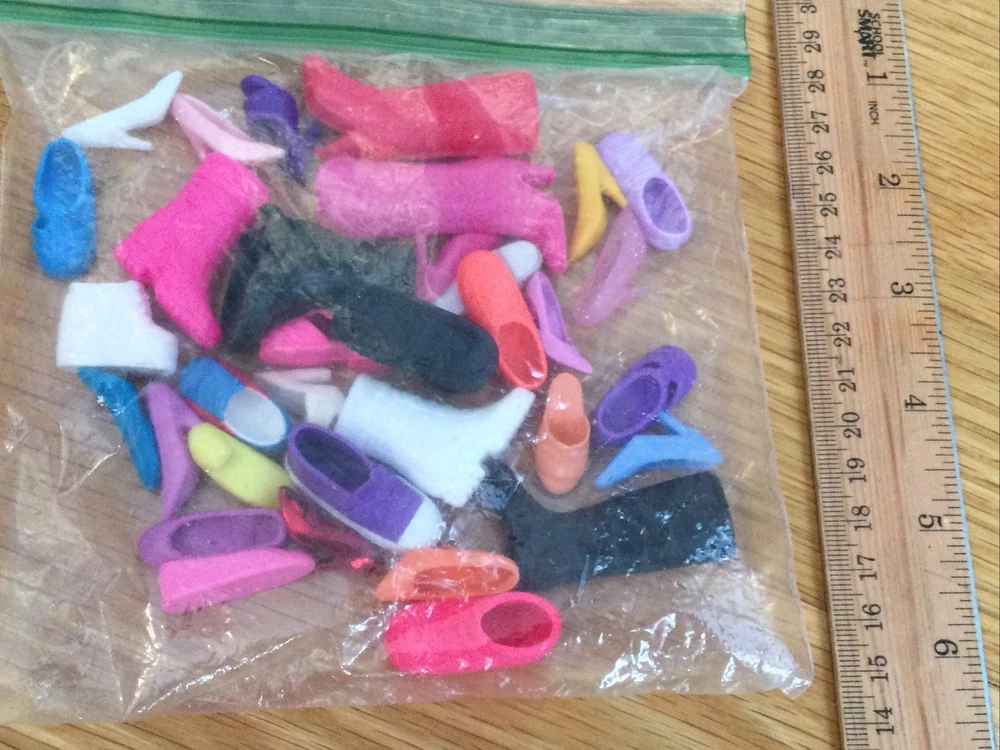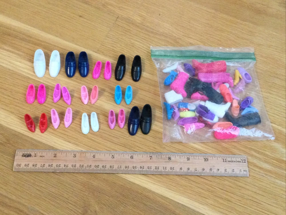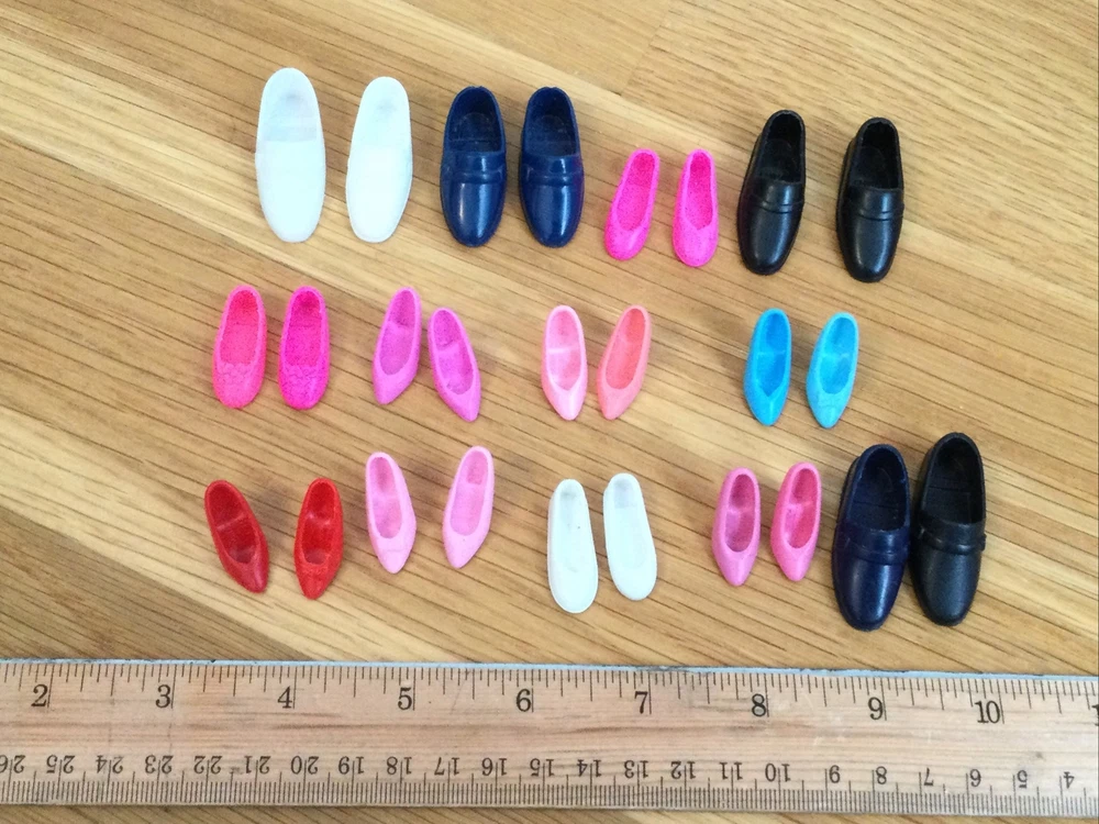 Huge lot of DOLL SHOES for Barbie and other 11” Dolls as well as Ken, Barbie Little Sister Dolls (Skipper etc) and similar fashion dolls: Mixed sizes, sets and brands. Some are SINGLES (in baggie) and some are PAIRS. Vintage. Some are marked where they were made: Hong Kong, China, Taiwan. From a smoke-free and pet-free home. Please see photos to supplement this description. Ruler indicates size. I am happy to combine shipping so please see my other listings this week (including LOTS of vintage and collectible toys INCLUDING OTHER BARBIE LOTS THIS WEEK!). Thanks and good luck!!