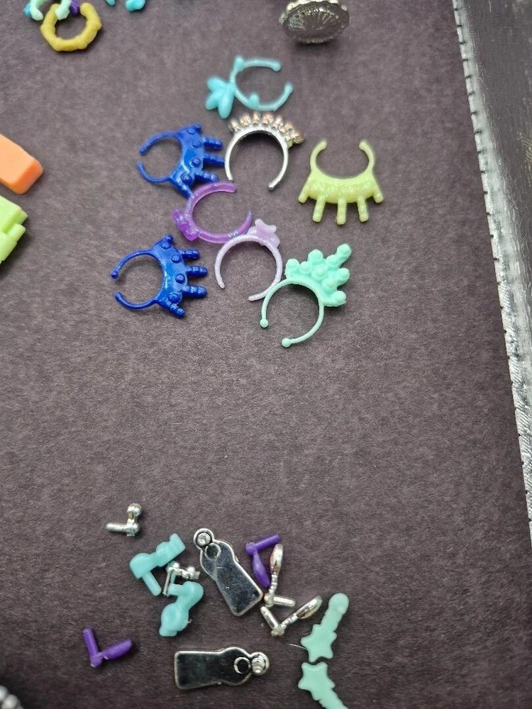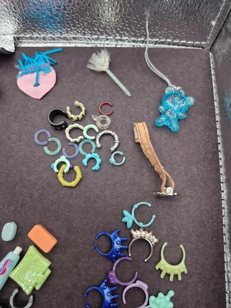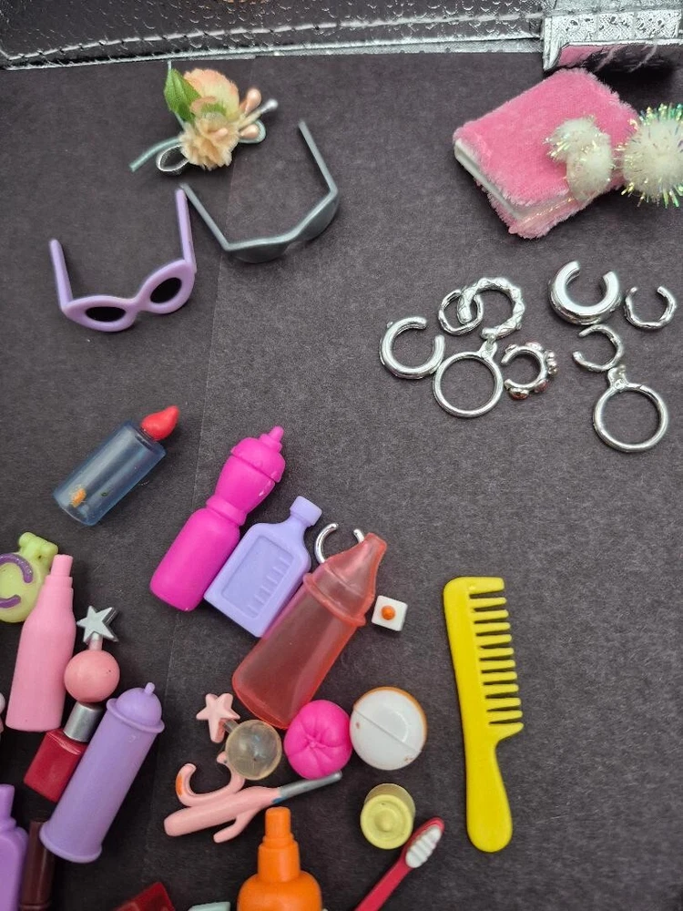 This Vintage Barbie Skipper Doll Hair and Bath Accessories mixed LOT of approximately 100 items is a must-have for any Barbie collector or enthusiast. The mixed lot includes a variety of accessories such as a comb, hair accessories, jewelry, charm bracelet, headpiece, makeup essential, and sunglasses. These accessories are perfect for any occasion and come in a multitude of colors. The Barbie dolls are not included in this lot are original and licensed reproductions, with characters such as Barbie, Skipper, Ken, and Francie This Fashion & Beauty themed lot is a great addition to any collection and will bring hours of fun and imagination.