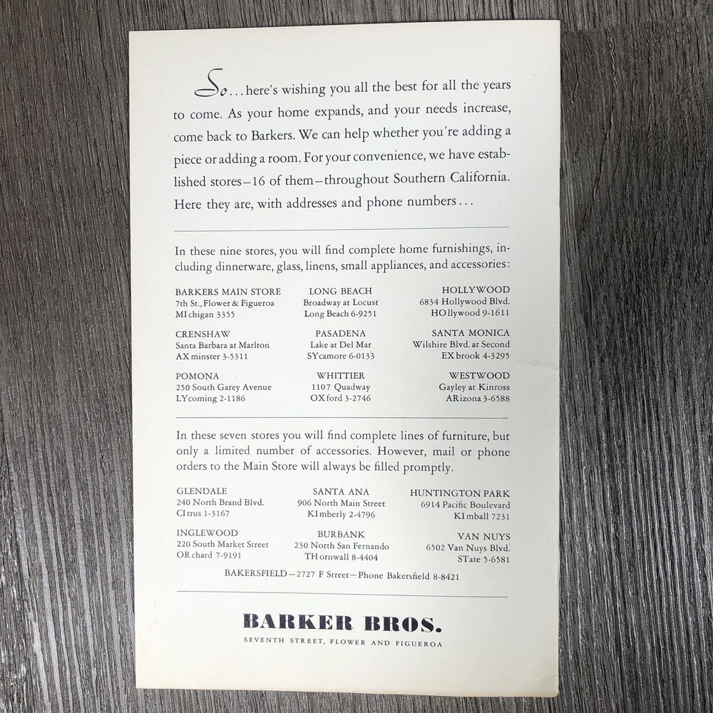 Vintage Barker Bros Bride Registry Booklet Stickers Bride’s Book Home Furnishings 1950s Southern California LA Los Angeles Orange County