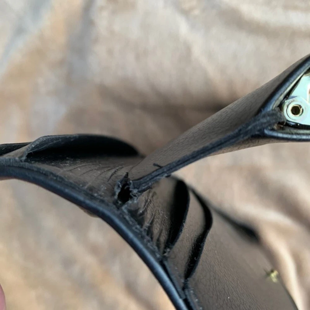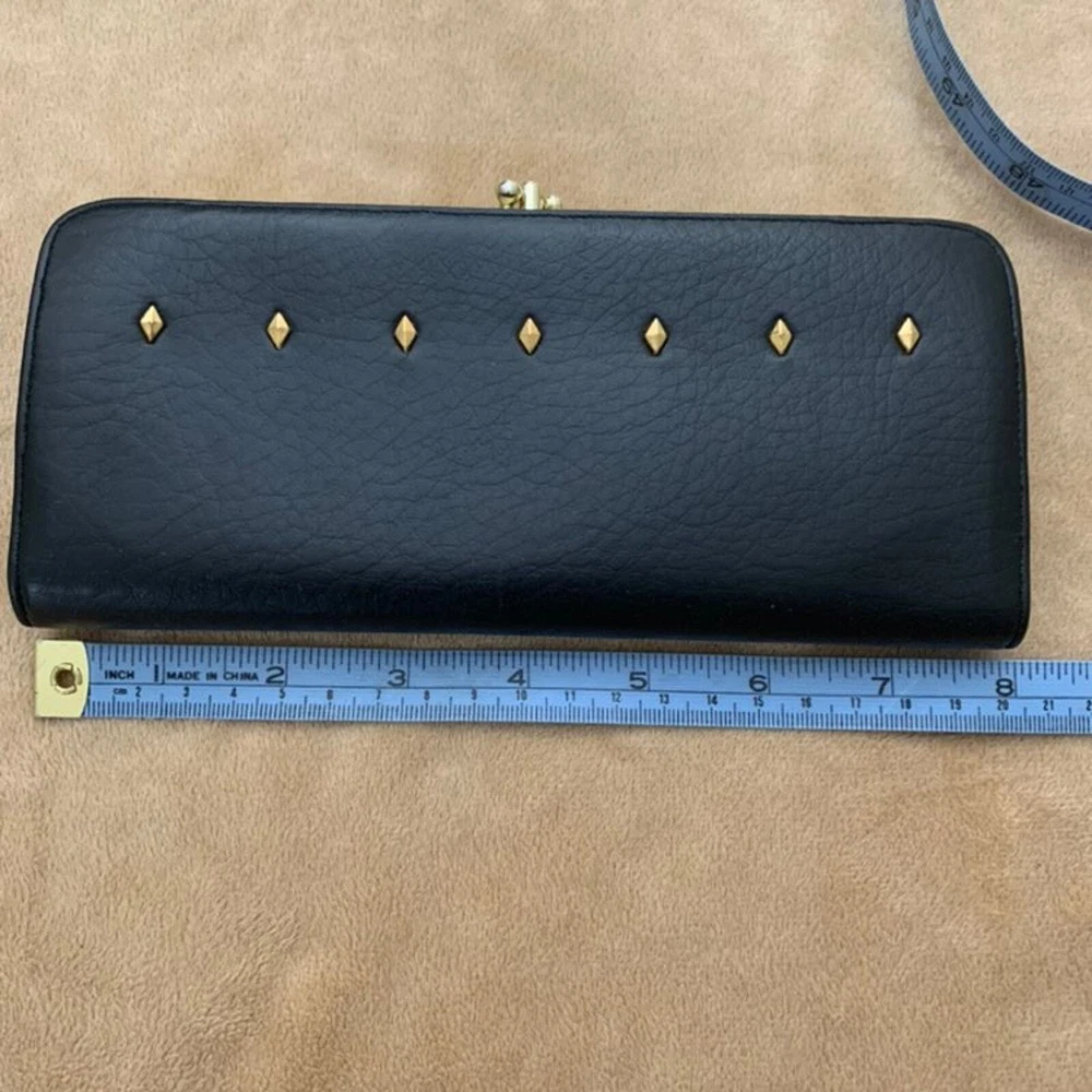 This vintage Baronet wallet is a stylish gem! The navy blue leather with brass clasps and diamond studs gives it a classic, elegant look. The double clasp and clear divider keep everything secure, while the interior wear adds character. Perfect for those who love retro charm with practical storage. A unique find that stands out!