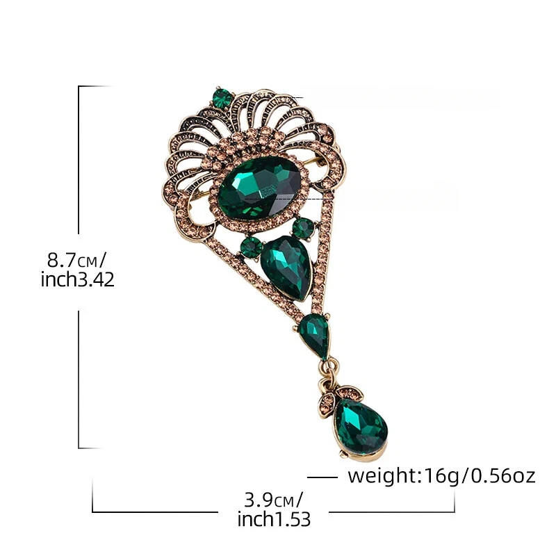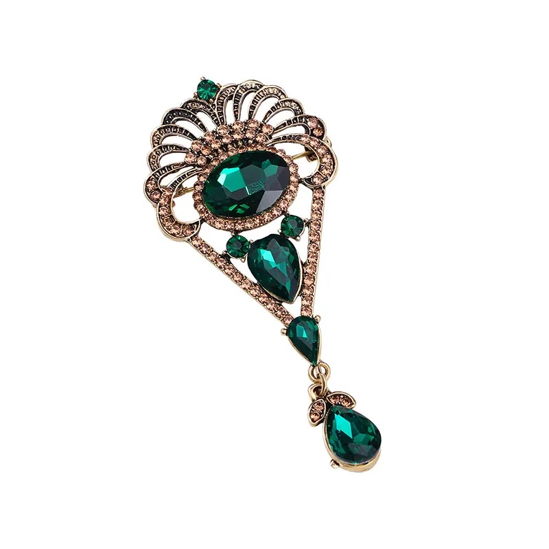 Vintage Baroque Drop Pendant Brooch Feminine Court Rhinestone Coat Pin Accessory