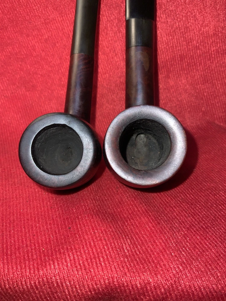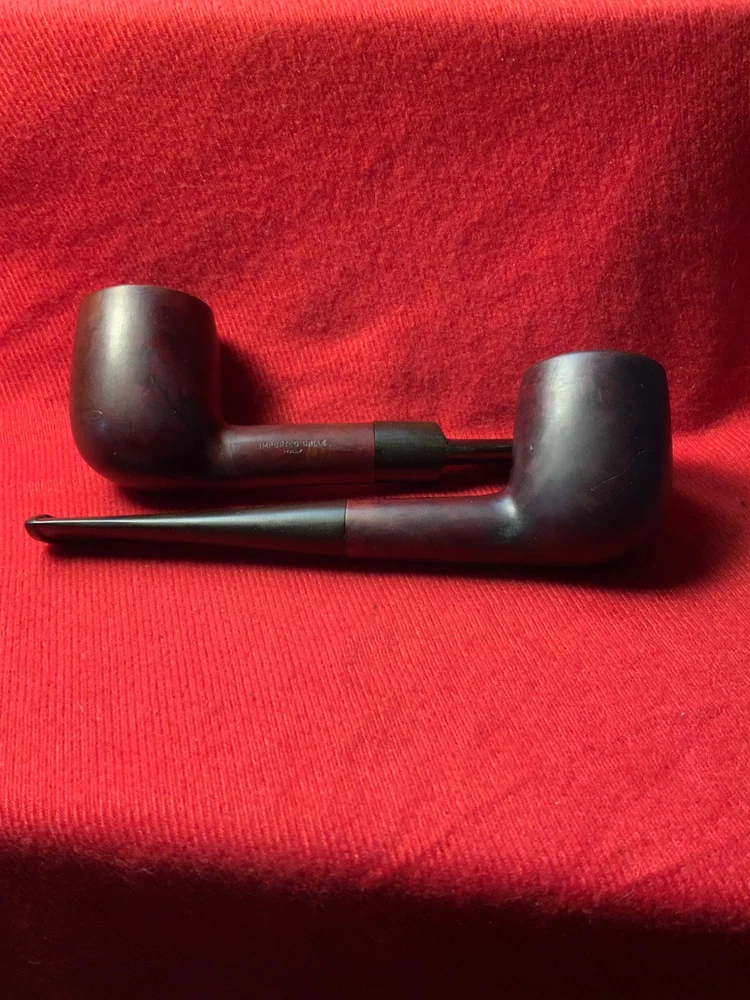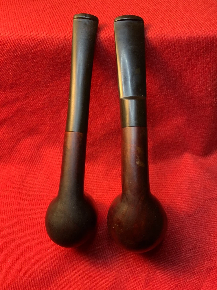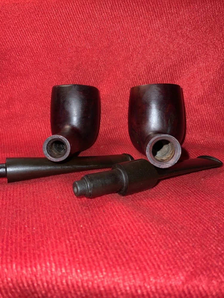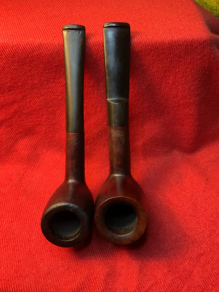 Listed please find a pair of vintage basket type billiards. One is marked “Eagle” and the other a true basket pipe referencing no maker, just “Imported Briar” and “Italy”. Each of these billiards is in good smoking condition. However, each has had repair done to an exterior bowl split. The splits do not appear to go through and they seem complete, but please review the photos for your own thoughts. The original push stems are in expected vintage condition with tooth marks/chatter about the bit plus oxidation. Stand not included. Items are shipped within 48 hours of confirmed purchase except for weekends and holidays. Combined shipping for same day purchases (adjusted for weight/dimension plus supplies and handling). No holds - transactions canceled if not paid within 72 hours of winning bid. Items offered are preowned “as is”. Photographs are considered part of description. Shipping to continental United States only. No international shipping. Thank you for your consideration.