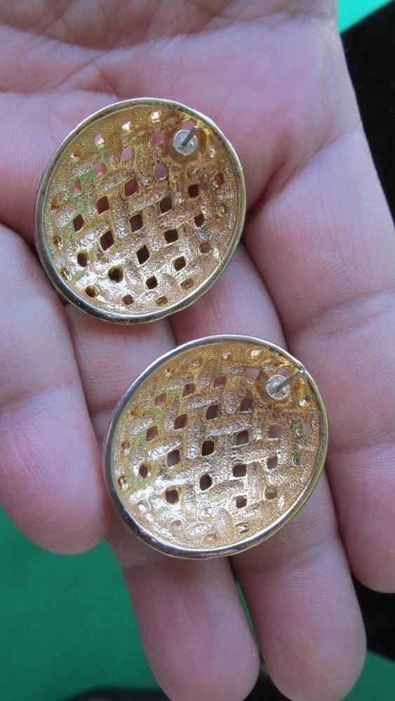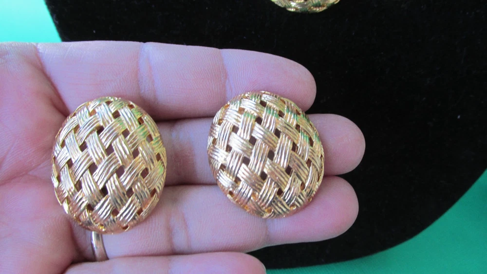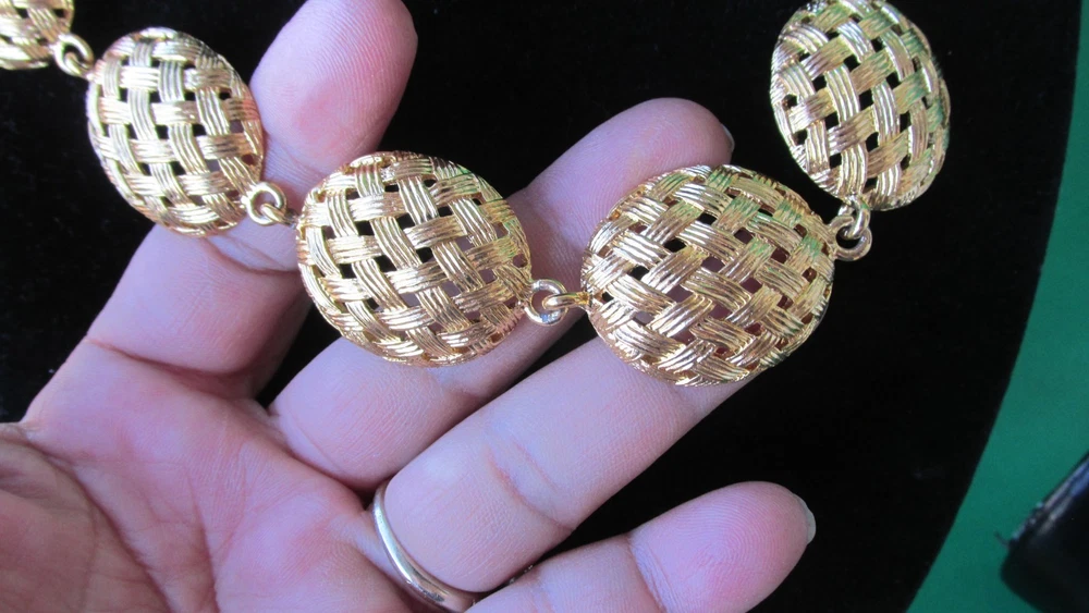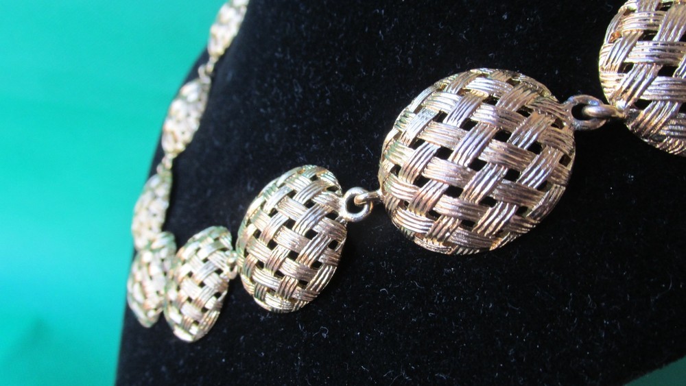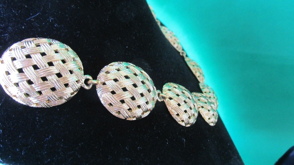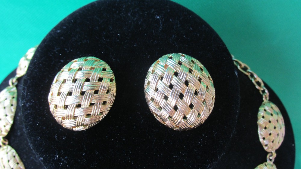 Vintage Basket Weave Gold Tone Collar Necklace & Post Earrings Believe is Monet Brand 21''