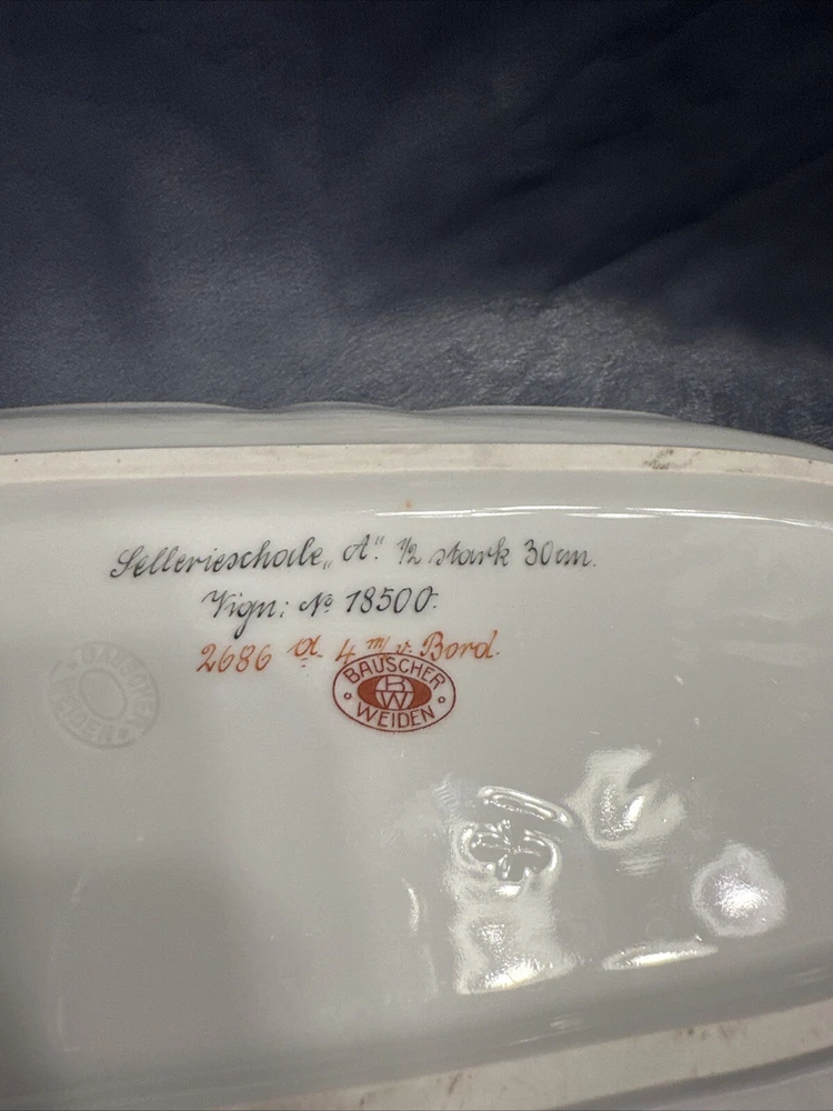 Add a touch of vintage charm to your table with this beautiful Bauscher Weiden German oval relish tray. Made in Bavaria, Germany between 1920-1929, this stoneware tray features a classic white color and a delicate vintage pattern that is sure to impress your guests. The tray is perfect for serving condiments, sauces, and other small dishes, and its unique oval shape makes it a great addition to any dinnerware collection. Crafted using traditional pottery techniques, this tray is a true example of fine German porcelain. Its brand, Bauscher, is known for its high-quality and durable products, making it a great investment for any home. Don't miss your chance to own this beautiful vintage plate, perfect for collectors and those who appreciate fine craftsmanship. Confiteria de las familias Domingo Acal