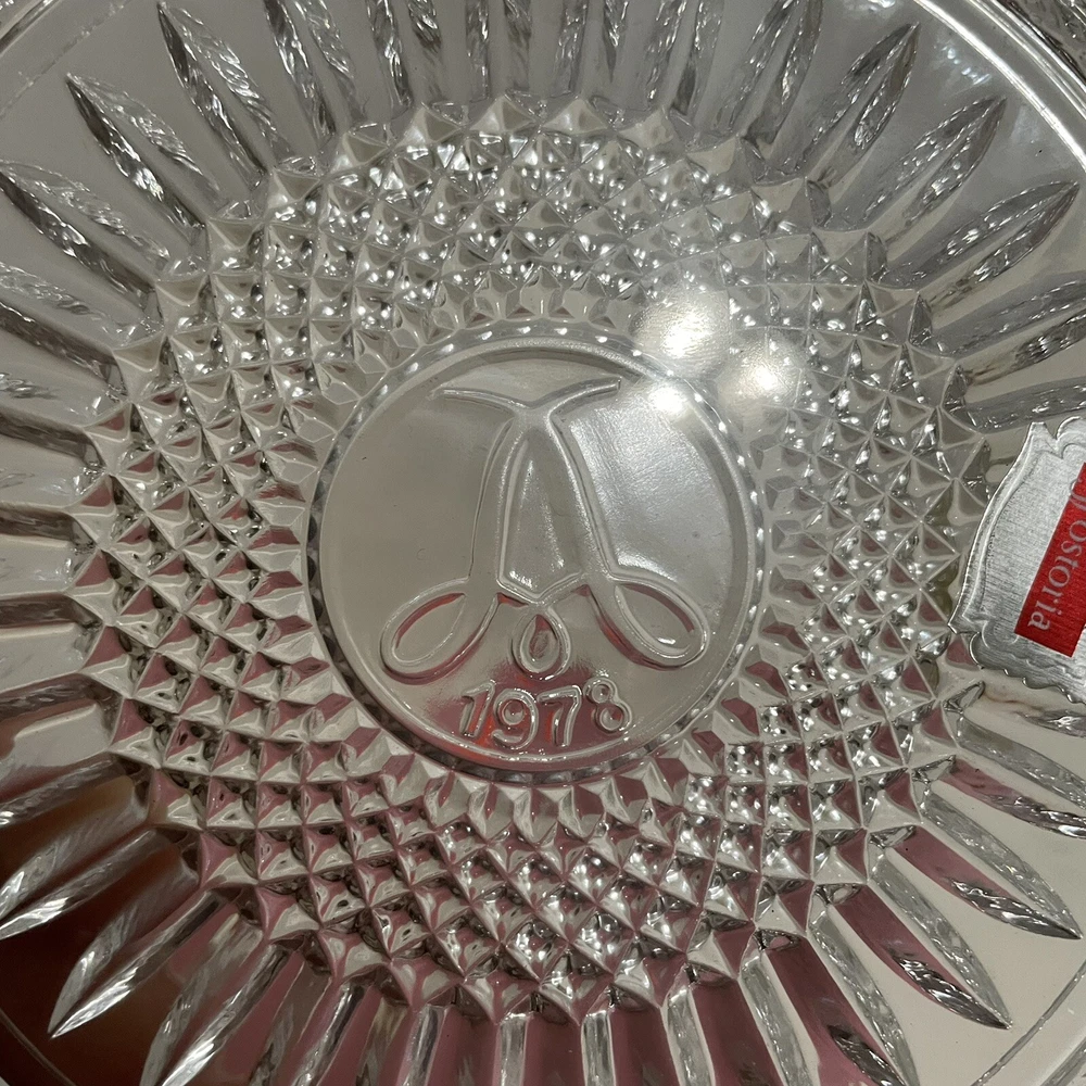 Vintage~ Beautiful 1978 Avon 92nd Anniv Set of 2 FOSTORIA LEAD CRYSTAL ~8"Plates The product is a set of two vintage 1978 Avon 92nd anniversary collector plates made by Fostoria from lead crystal glass. Each plate has a diameter of 8 inches and features an elegant glass production style. These round plates are considered antique and were manufactured in the United States. The design and material of these plates reflect a high level of craftsmanship and are sought after by collectors of decorative glassware.