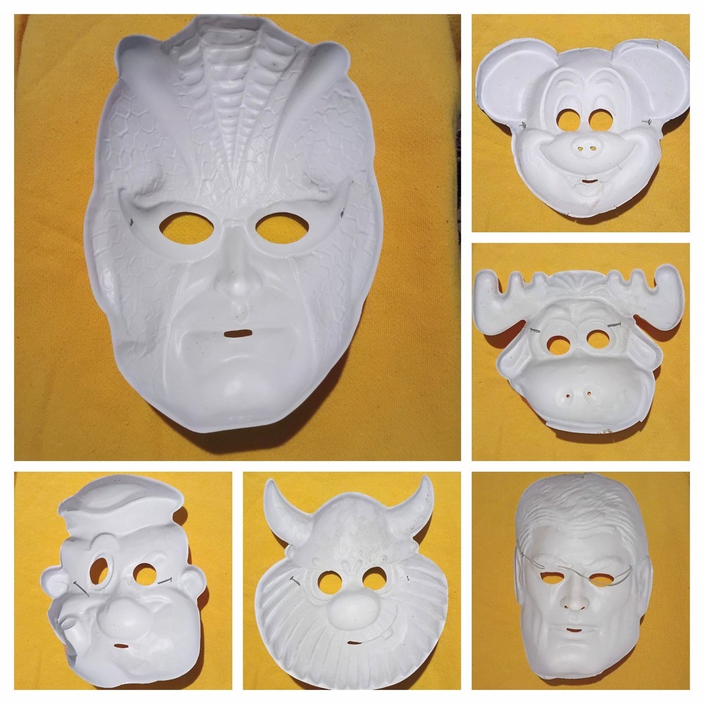 lot of 6 vintage plastic Halloween masks popularized by the brands Ben Cooper and Collegeville. What u see is what u get. PLEASE SEE PICS FOR CONDITION most have broken or missing strings