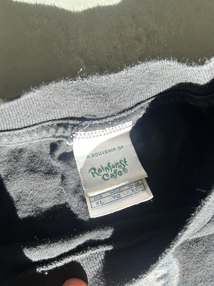 Department: Men Theme: 90s Color: Black Brand: Rain Forrest Cafe Character: Tiger, Bengal Tiger, Rain Forrest, Animal, Endangered Species Type: T-Shirt Size Type: Regular Vintage: Yes Size: XL