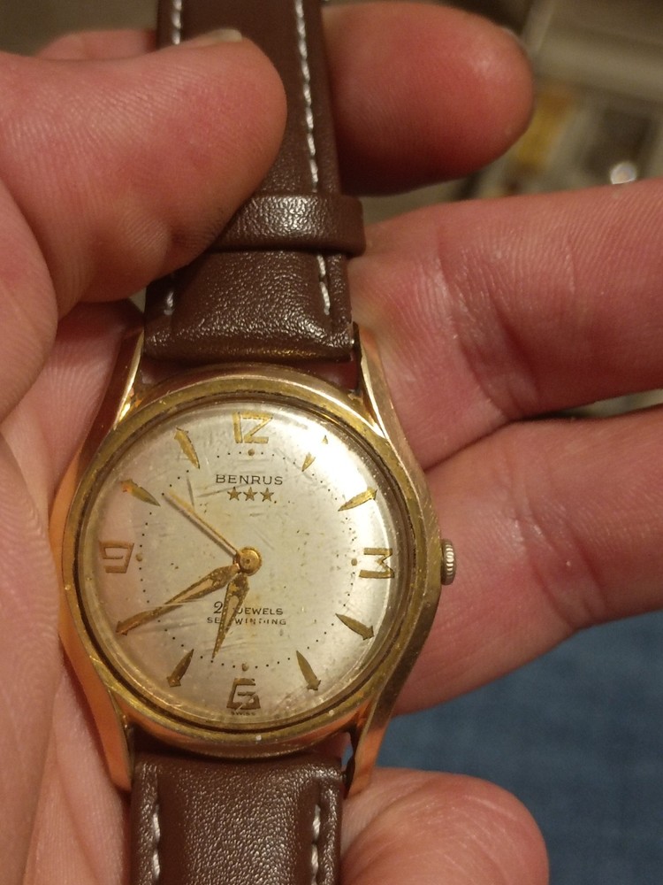 The Vintage Benrus 3 Star Self Winding Watch is a classic piece. Arabic numerals on the indices. This watch is a men's dress/formal style timepiece with a self-winding mechanical movement, housed in a stainless steel case with a polished finish. This vintage Benrus watch is a timeless piece that exudes elegance and sophistication.