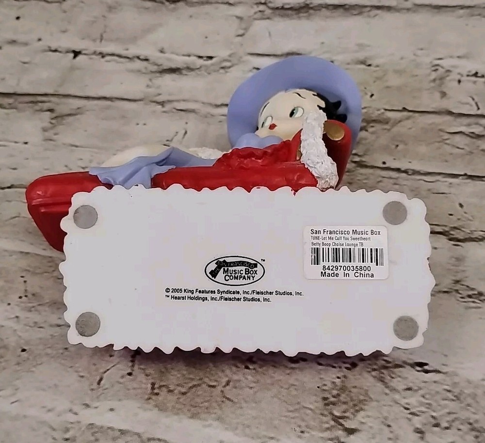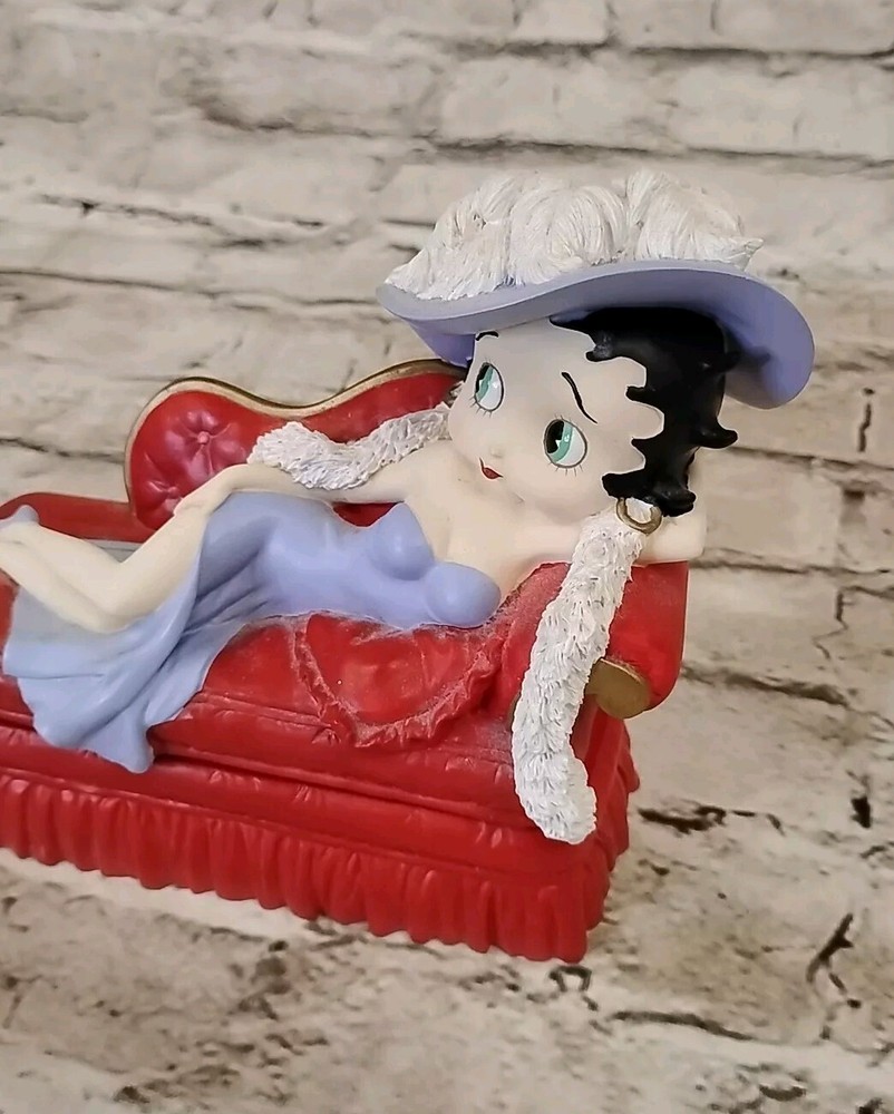 Just trinket box plays let me call you sweetheart tested and works great vintage piece for any Betty boop fan This vintage Betty Boop porcelain figurine is a must-have for any collector or fan of the classic cartoon character. The figurine features Betty Boop in her iconic pink dress and black boots, with a charming expression on her face. The piece is an original, manufactured in the 2000s, and comes boxed for safekeeping. The figurine is part of the Betty Boop franchise and is a licensed reproduction. It is perfect for display or as a gift for anyone who loves the character. The piece is categorized as a collectible and animation merchandise, and is a great addition to any collection.