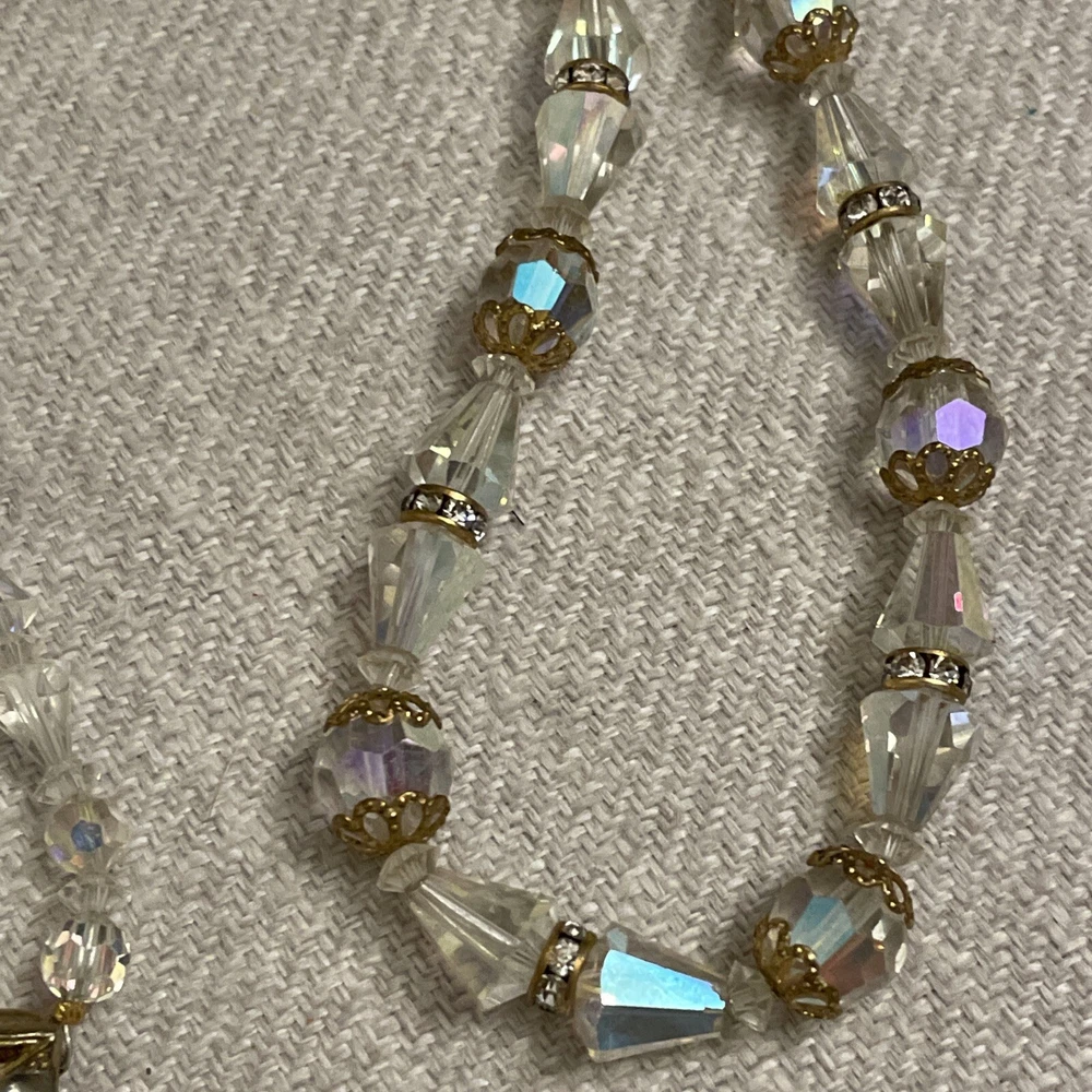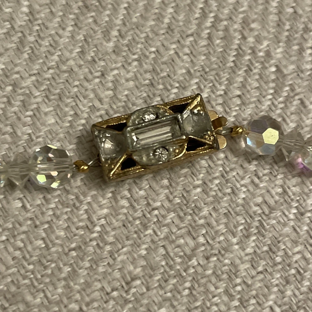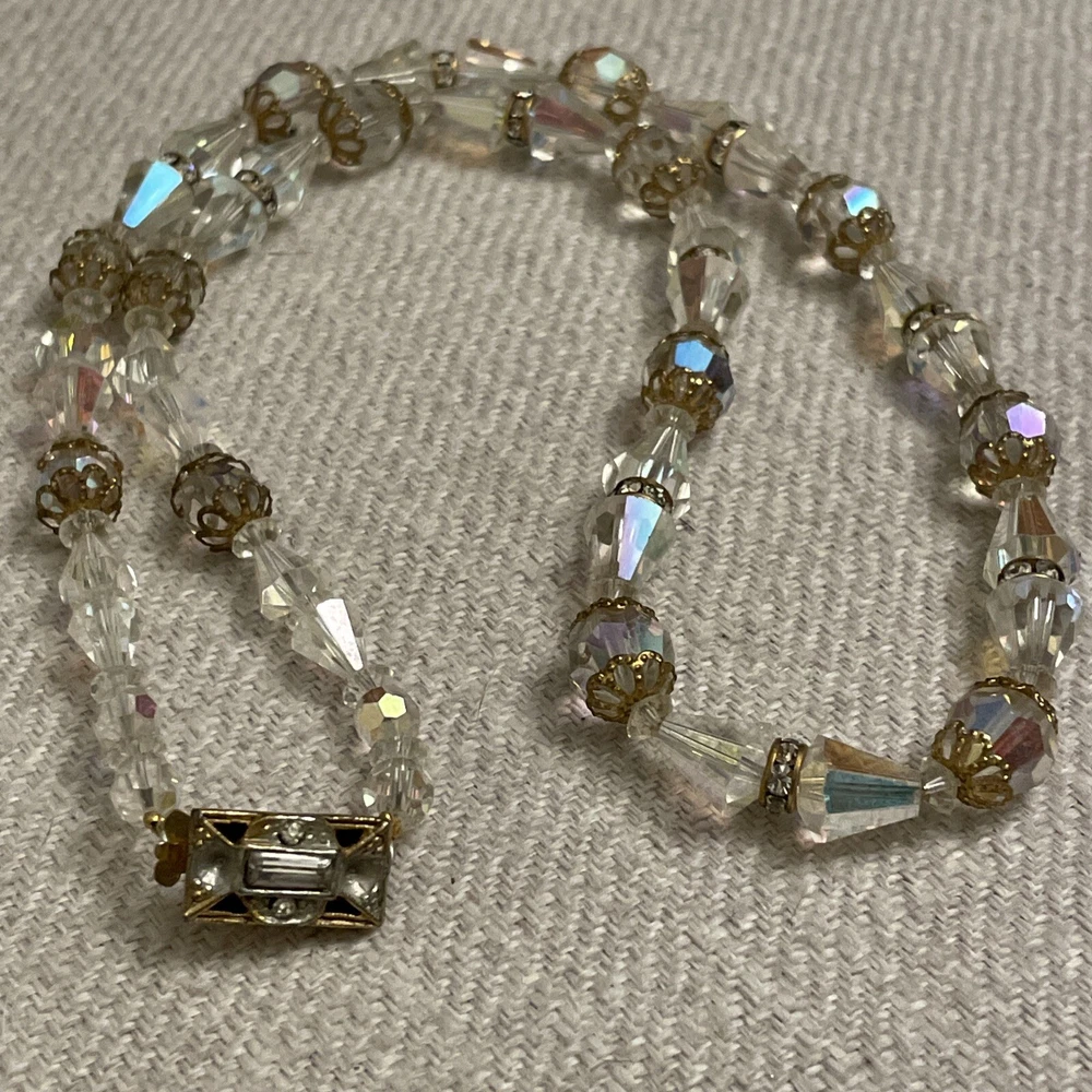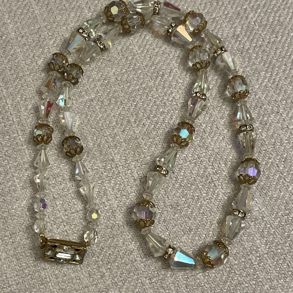 Vintage Beveled Faceted Clear Aurora Borealis Crystal Beaded Necklace Estate. Condition is Pre-owned. Shipped with USPS Ground Advantage.