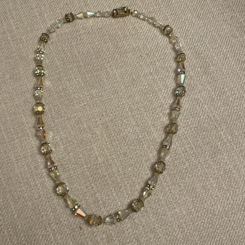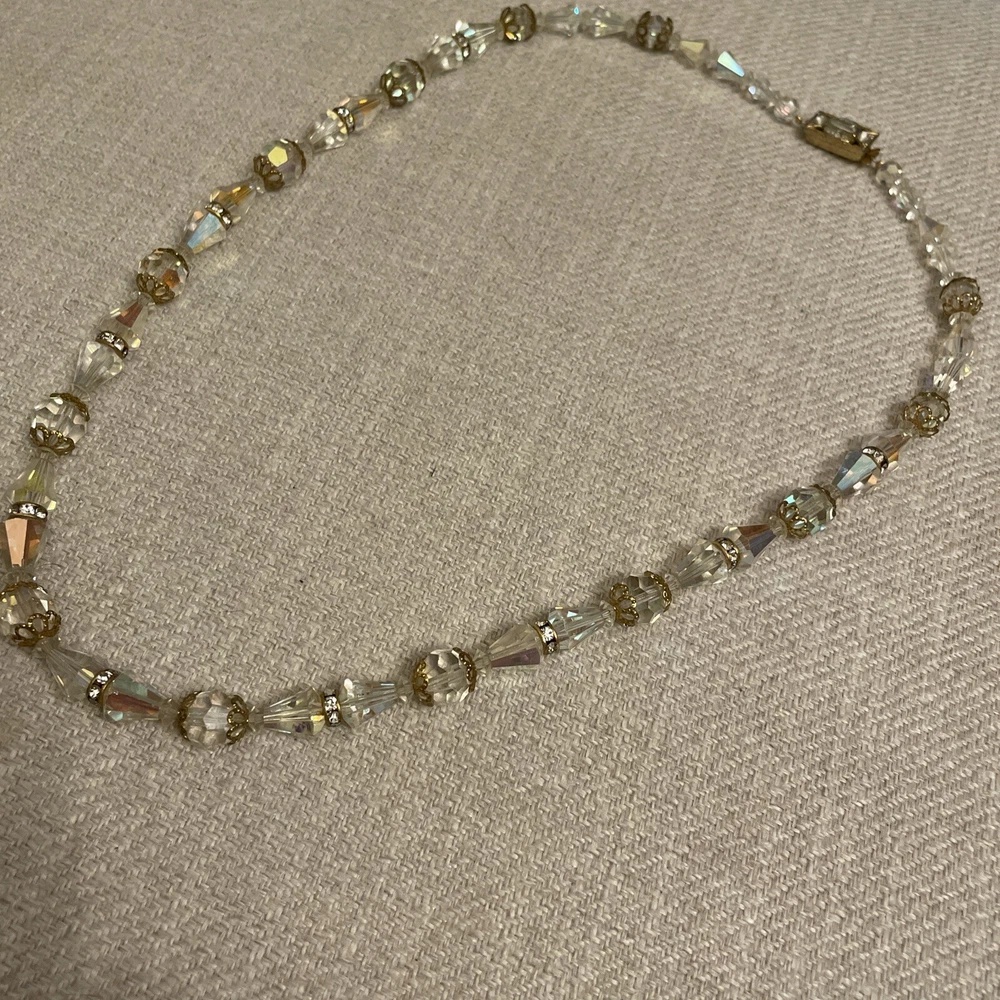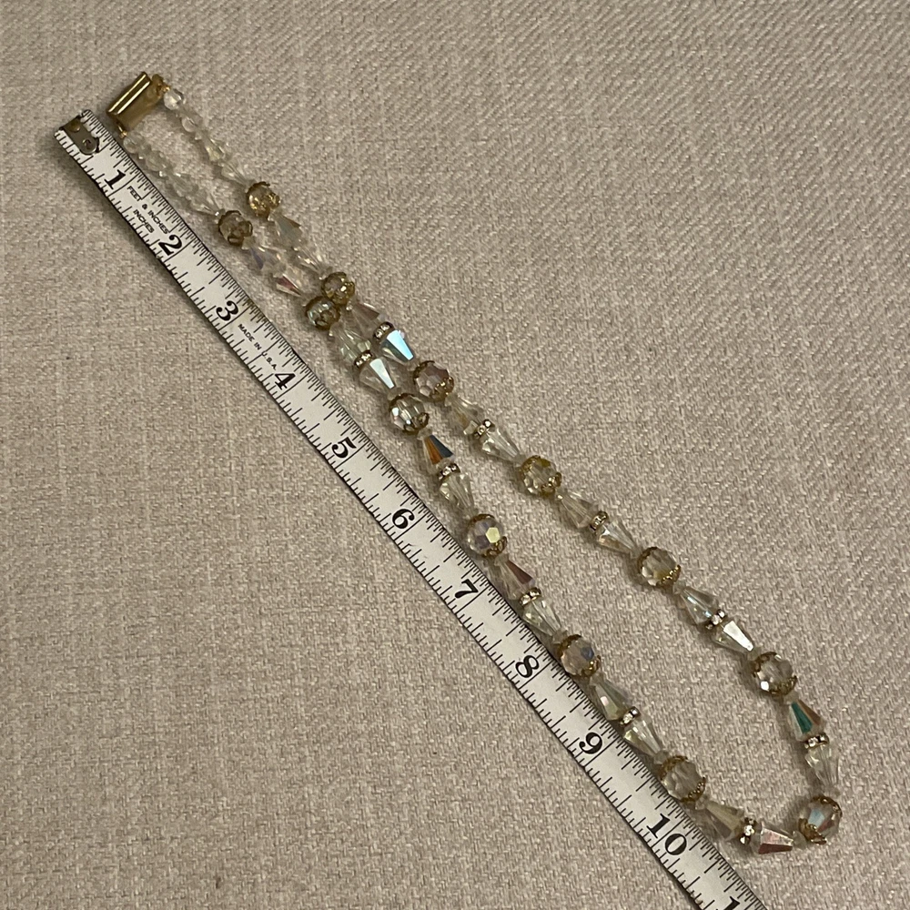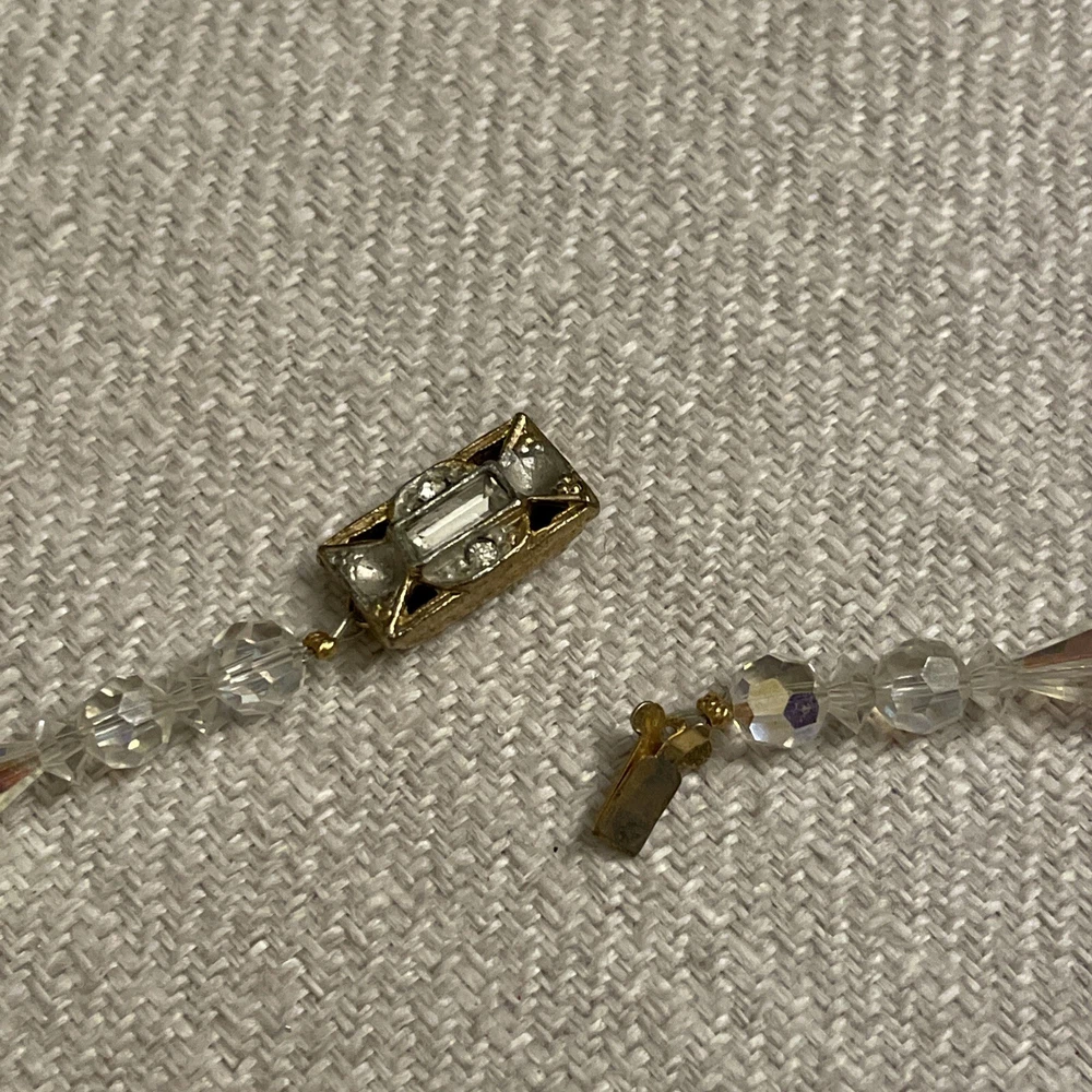 Vintage Beveled Faceted Clear Aurora Borealis Crystal Beaded Necklace Estate. Condition is Pre-owned. Shipped with USPS Ground Advantage.
