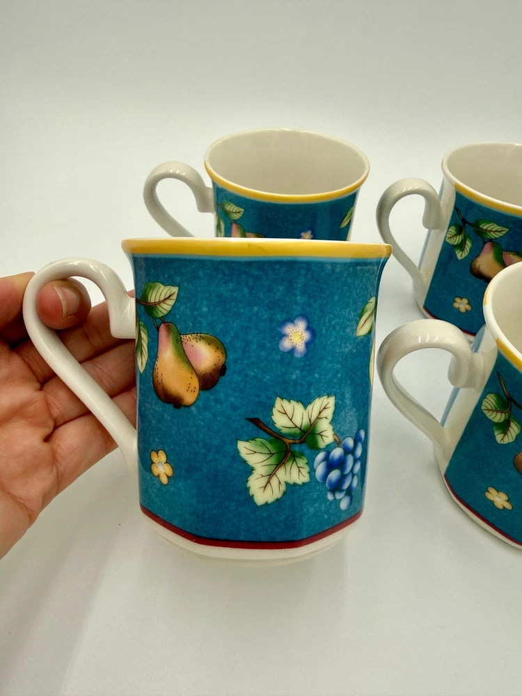 Vintage Biella Villeroy & Boch Fruit and Flowers Porcelain Mug Set