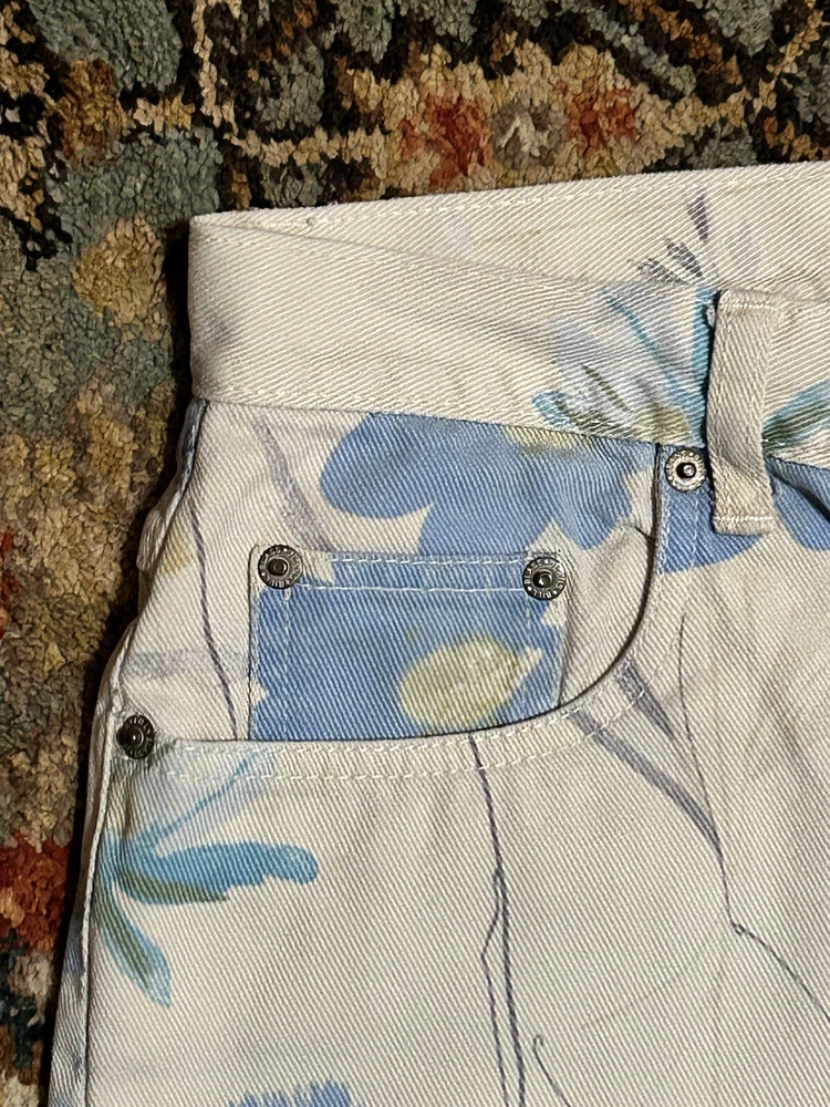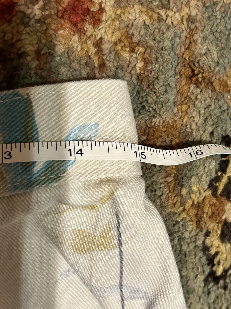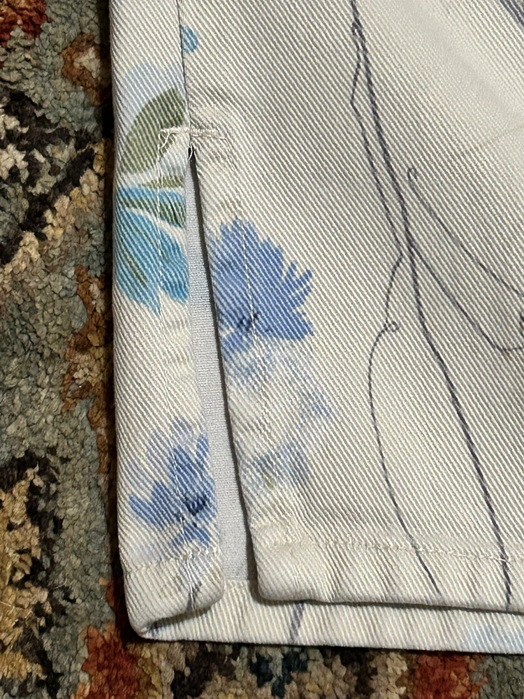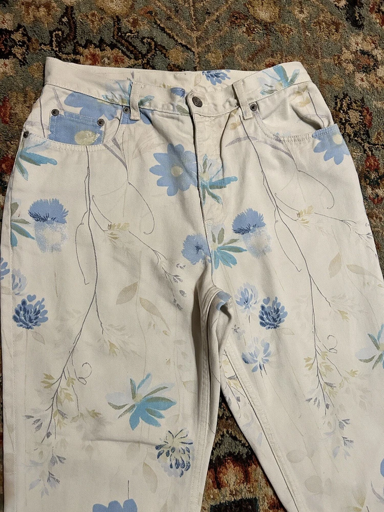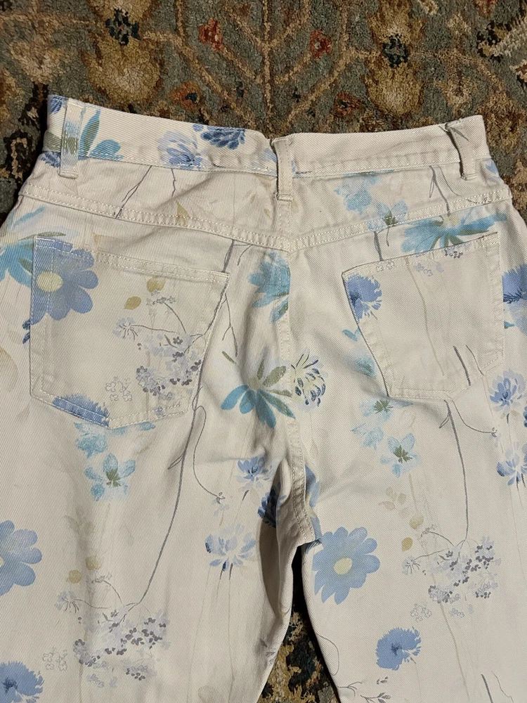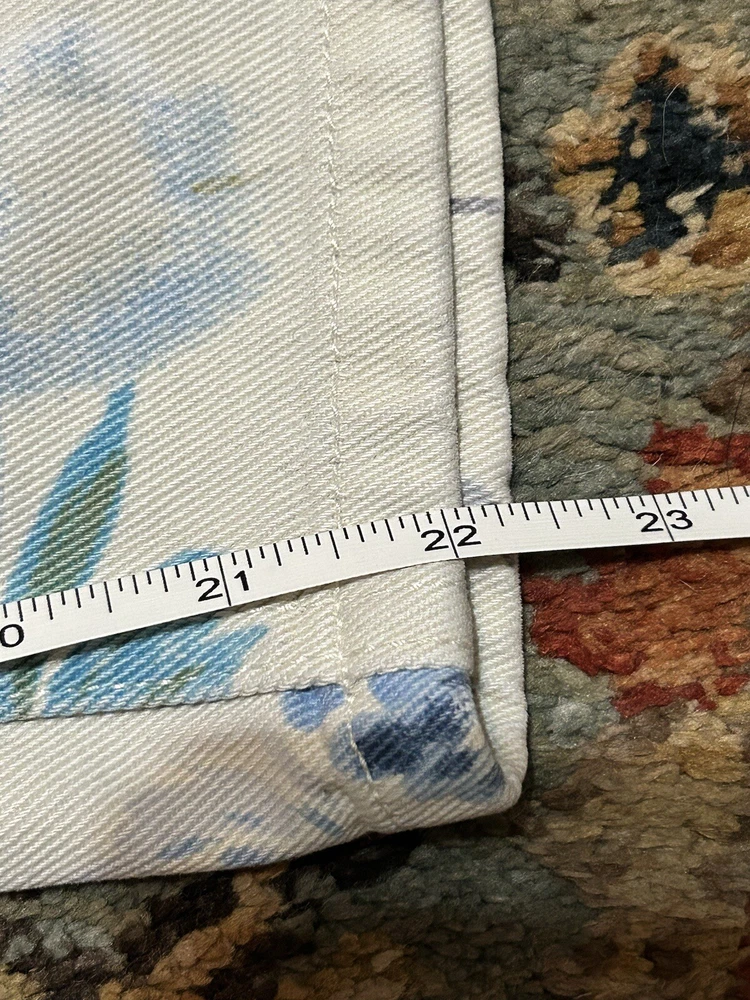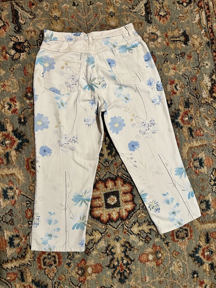 Vintage Bill Bass Floral Jeans Size 9 Waist: 30” Inseam: 22” Rise: 11” Please be aware that used, vintage, or older items may show a few signs or wear or slight fading due to age. Anything visible, such as stains, rips or holes are a possibility, if not shown initially. Measurements are taken from the waist, the inseam of the pant leg and the rise from the top of the jean to the end of the crotch.