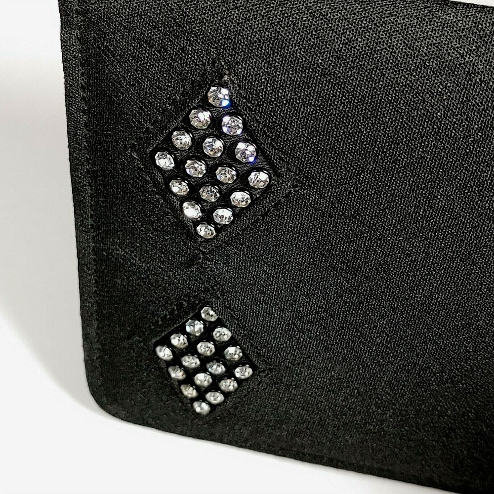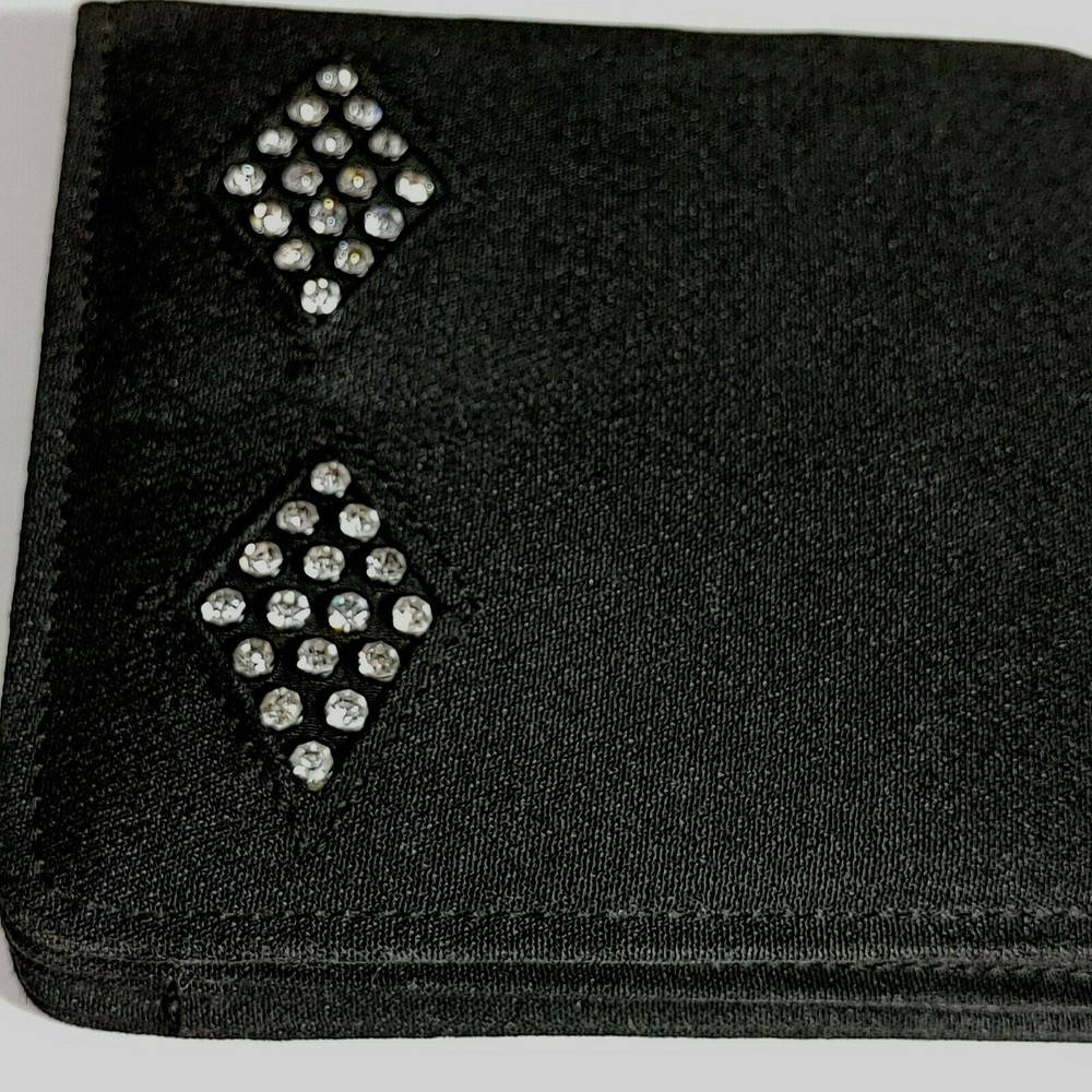 Vintage Black Rhinestone Studded Evening Clutch Wallet Billfold Made in England Excellent condition (pictures do not do this piece justice) Quality matte black material, though I do not know the material name. Beautiful rhinestones in a diamond shape pattern. Snap closure. Opens up to two card slot pockets and one interior pocket. No zips. Size: 7-1/2 x 4" Ships FAST from Canada with Tracking Thanks for shopping our store We take extra care in packaging to ensure safe arrival of your item. All parcels are shipped with tracking so that you can monitor the shipment progress and delivery. Please Follow Our Store for Updated Weekly Items . Have a Great Day! Happy Holidays!USA buyers save with currency exchange on purchase.We ship UPS, Canada Post and Fedex as postage requires. Thank you for being a valued customer!