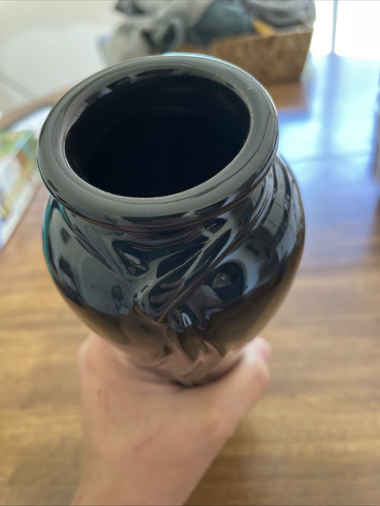 The item is a vintage-style vase, possibly made in the style of Fenton or Haeger pottery. Has no chips or cracks. Perfect small/medium classic vase. 8 inches tall with a 3 inch base