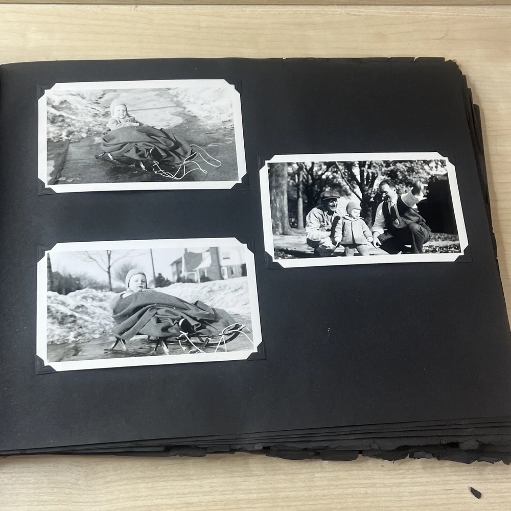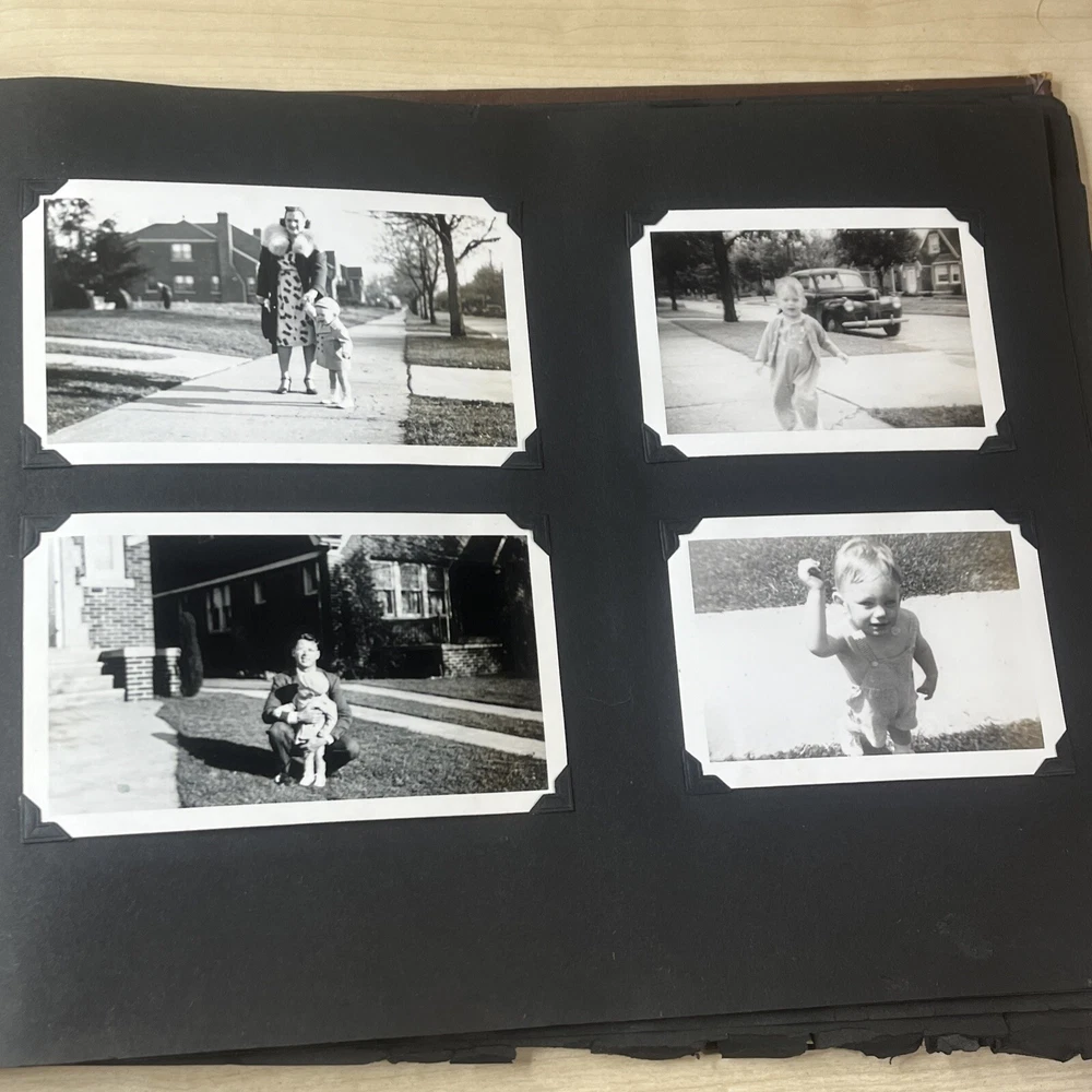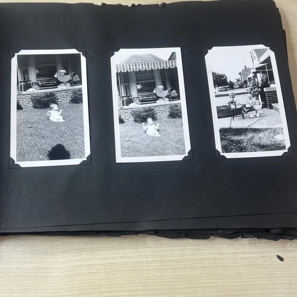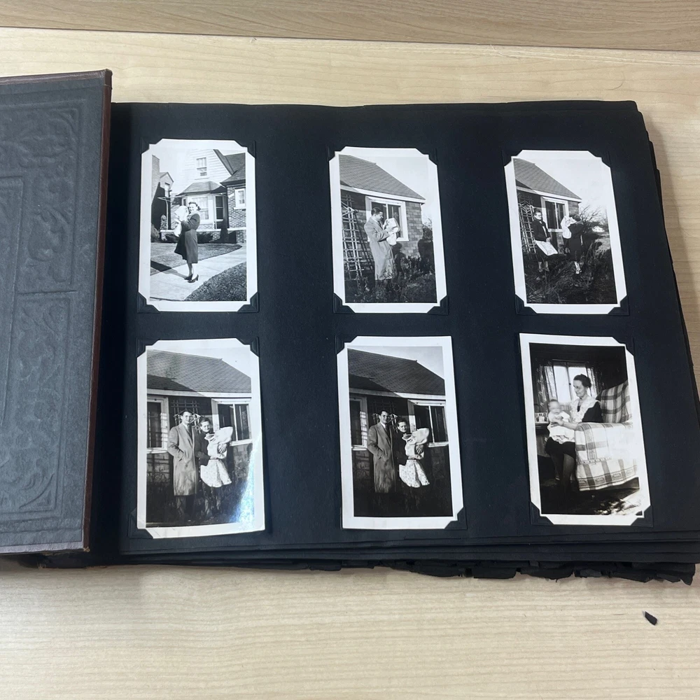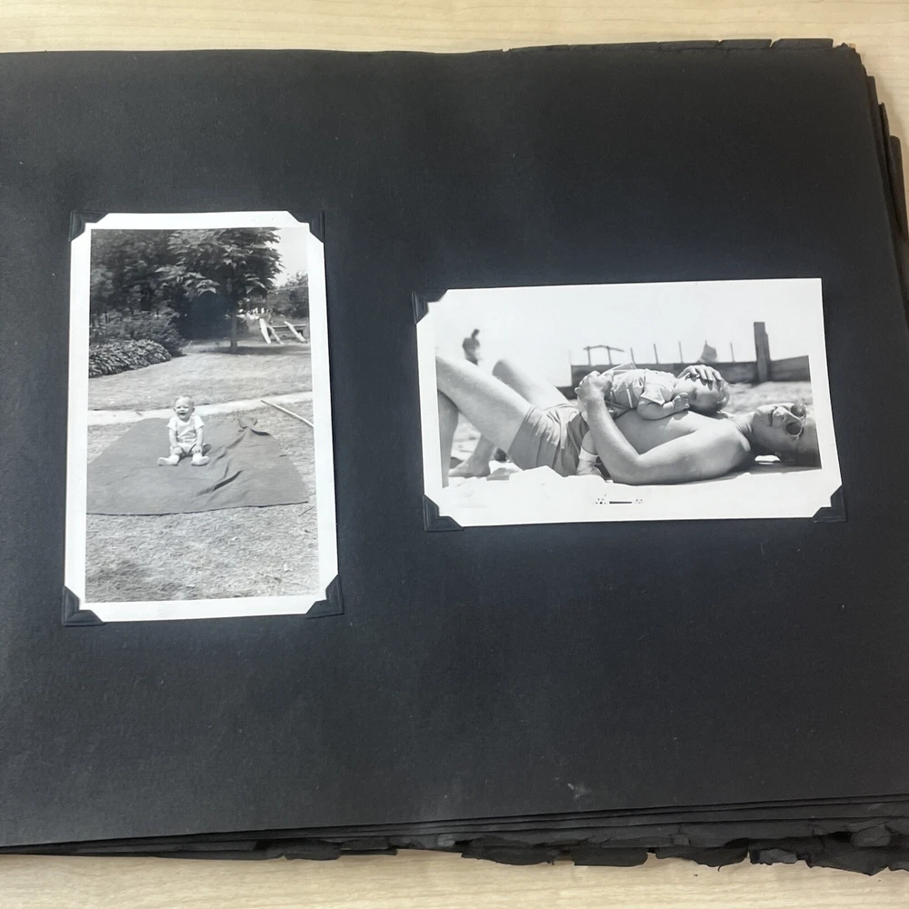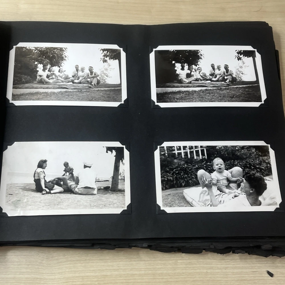 Vintage Black & White Family Photo Album 92 Photos Family Babies Vacation 1940's. Album shows some wear with all photos in good condition.