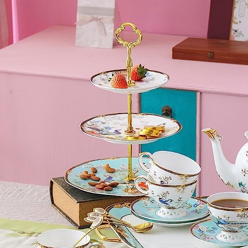 Return Policy Fast Delivery Trusted seller 3-Tier Afternoon Tea Stand Porcelain Serving Stand Cupcake Stand Vintage Floral 3-Tier Tray Stand Light Blue Bone China Cake Stand for Tea Parties and Dessert Displays (Blue3) Product Description [Multifunctional and practica]: Our bone china serving stand is a great way to display delicious afternoon tea treats, cupcakes, fruit, desserts, and more. The elegant 3-tiered cake stand is great for tea parties, hosting dinner parties, weddings, holiday parties, baby showers, Christmas, and serving delicious desserts to your friends or family. [Bone China Advantages]: Bone china features a noble and elegant appearance, with a tough texture and a high level of transparency. The texture is fine and easy to clean, not easy to wear and tear. [Beautiful Appearance Design]: The floral serving stand uses phoenix and peony as the main creative elements, combined with ink art, to depict a scene of a hundred birds facing the phoenix, peace, and vitality. Meanwhile, the hand-painted gold trim adds a touch of glamour, making it a perfect match for any occasion. [Easy to assemble and store]: Our cupcake stand is easy to assemble and can be easily disassembled and stored, the layered design saves you valuable storage space, and the flower-shaped hanging ring on the top of the stand is easy to carry and move, lightweight and portable, perfect for indoor and outdoor use. [Bone China Cupcake Stand Material Safety]: 3-Tier tray stand cupcake stands are all bone china, the bone china cupcake stand set is made of high-quality fine bovine bone powder and ceramic clay, which is a natural material. [Dimensions and Package Contents]: Overall height-15 inches. Diameters of platters: Bottom tier: 10.5 in, Middle tier: 8 in, Top tier: 6 in. Just the right size to show your culinary creations. The package contains 1 handle, 1 screw, 2 brackets, 6 spacers, and 3 bone china dessert plates. Shipping Returns Payment Shipping Shipping is FREE to all addresses other than APO/PO boxes in the lower 48 states. All our stock ships from US-based warehouses. Shipped via USPS or UPS (depending on location and package weight) Unless stated otherwise, all orders will ship within 24-72 hours of your payment being processed. Check our feedback to see the great reviews of FAST shipping we offer. Returns Seller does not accept returns Payment We currently accept payment via eBay managed payments only. Once payment is cleared, we will dispatch your shipment within 1-3 business days. Please refer to the "Shipping" tab for more information regarding shipping speed to your destination.