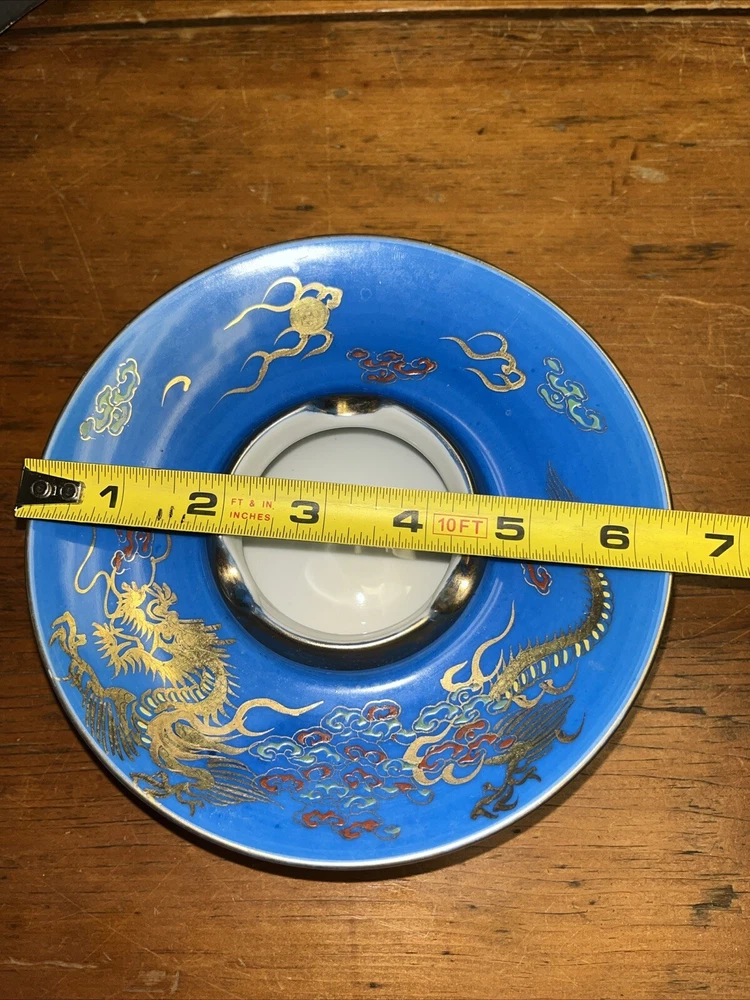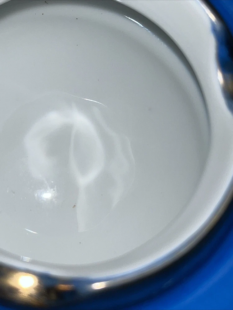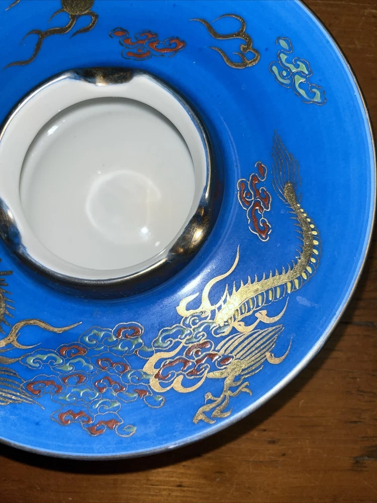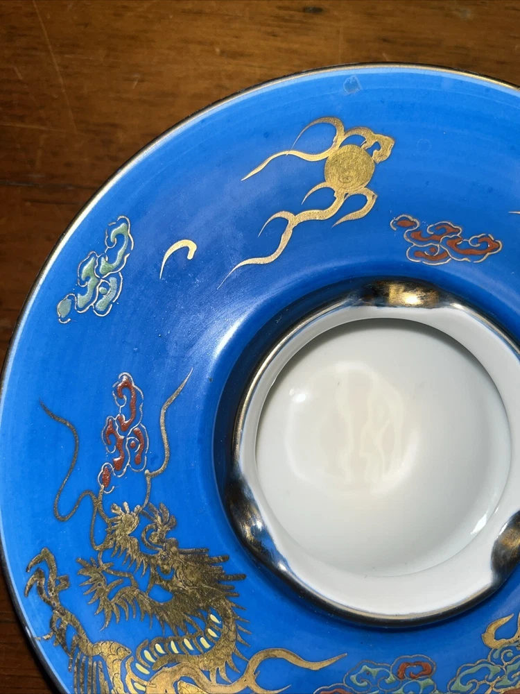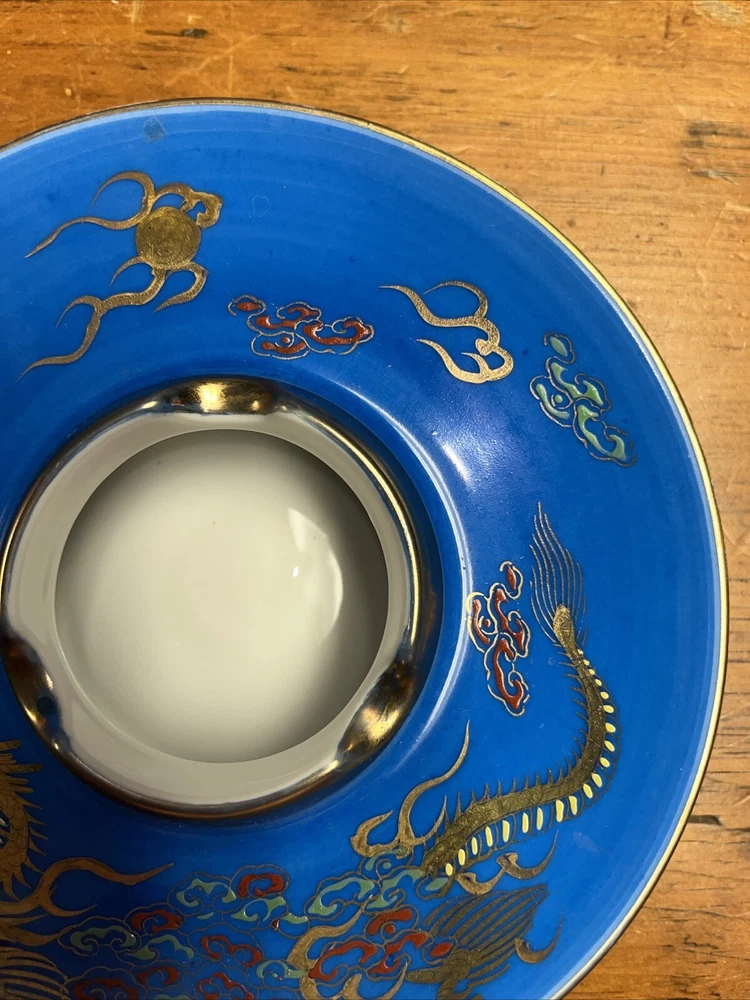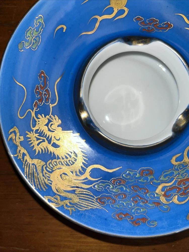 Vintage Blue 6.5" Footed Disc Ashtray UFO Saucer Nippon Style