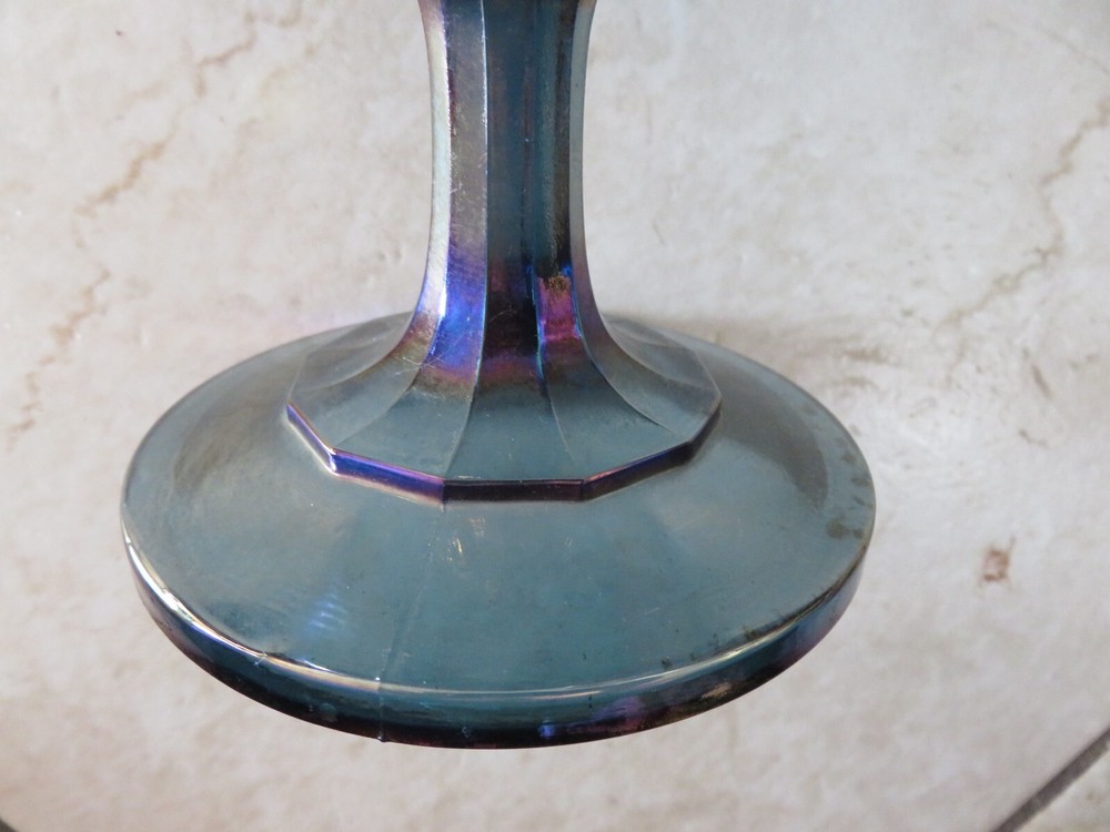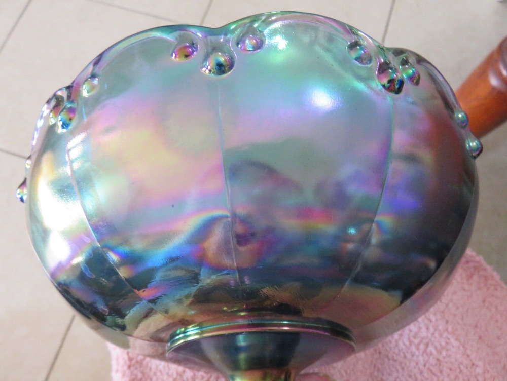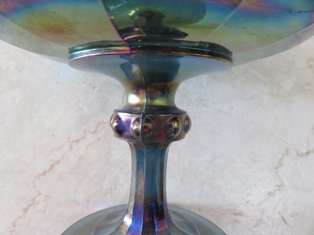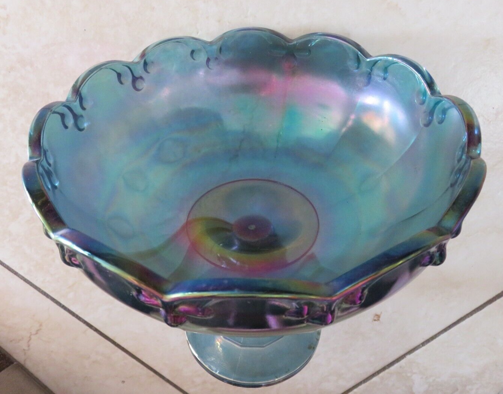 Vintage Indiana Carnival Glass Blue Iridescent Pedestal Fruit Candy Dish Bowl. Fabulous colors. Very good condition.