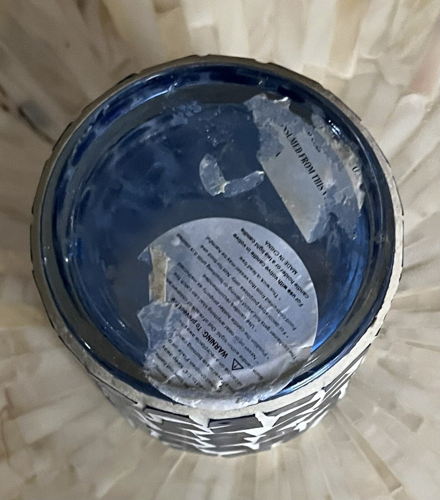 This vintage blue mosaic glass tealight holder is absolutely charming! The intricate mosaic pattern catches the light beautifully, creating a cozy, warm glow. Though it has a small chip and some missing putty, the character and unique imperfections add to its vintage appeal. Perfect for adding a touch of rustic elegance to any space. Love it!