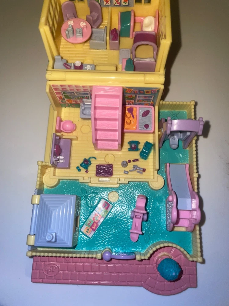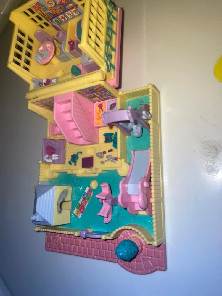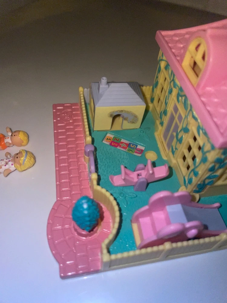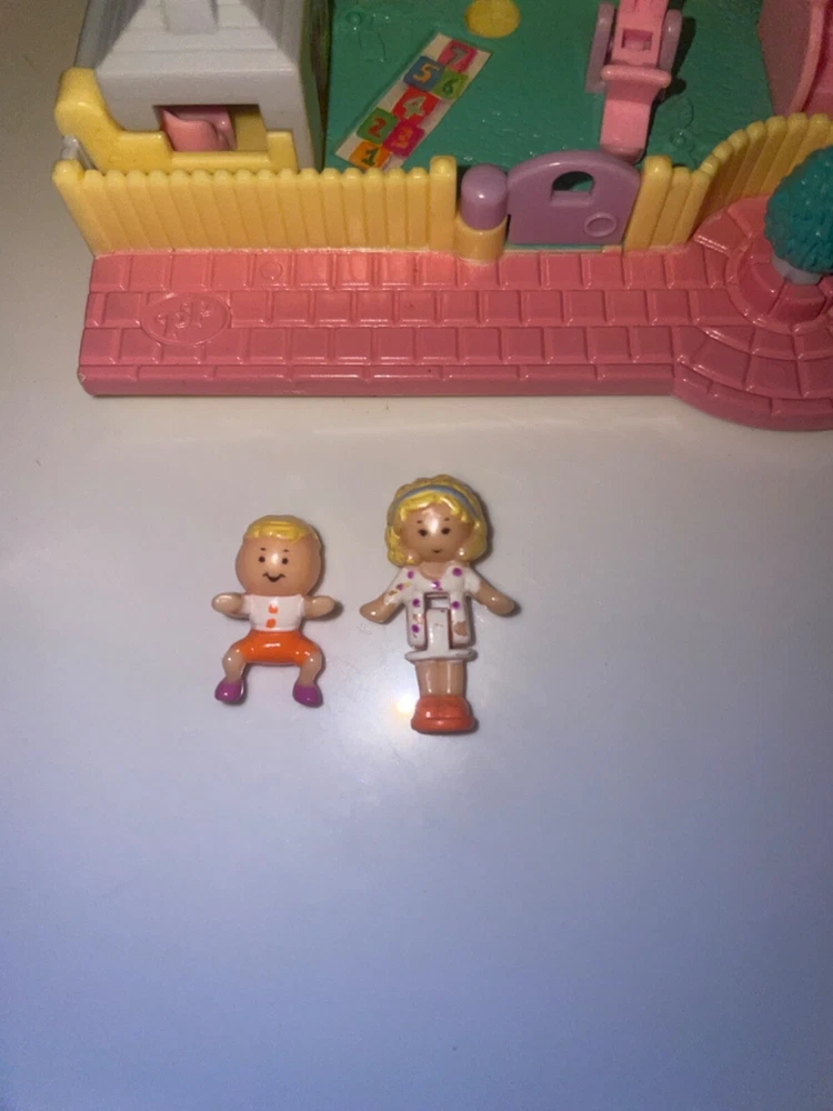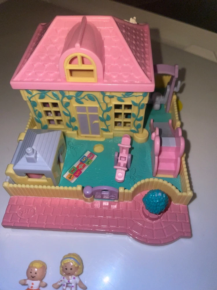 The Vintage Bluebird Polly Pocket Nursery School Pollyville playset is an original 1994 doll playset from the popular Polly Pocket franchise. Made of hard plastic, this vintage set includes figures and is designed to represent a nursery school in the Pollyville world. As a vintage item, collectors may appreciate its nostalgic value and unique design characteristic of the early Polly Pocket toys.