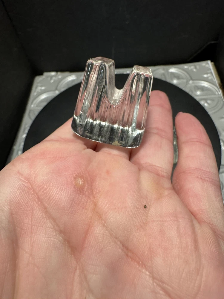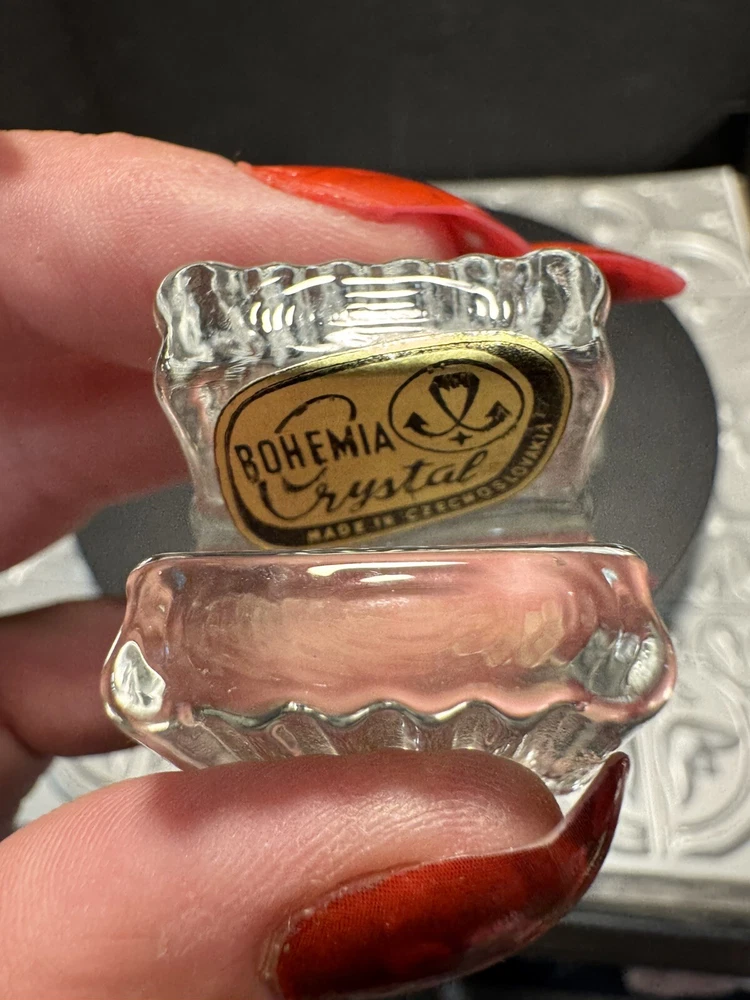 This vintage Bohemian crystal small knife rest is a unique addition to your dinnerware collection. Made in Czechia, it exudes a stylish Toleware vibe that is perfect for any kitchen decor. The intricate design is sure to catch the eye of any guest and add a touch of elegance to your dinner table. Crafted with the finest quality materials, this knife rest is durable and sturdy. It is perfect for holding your favorite steak or chicken breast while you carve it with ease. Whether you're a collector or just looking for a unique piece to add to your kitchen, this Bohemian crystal small knife rest is a great choice.