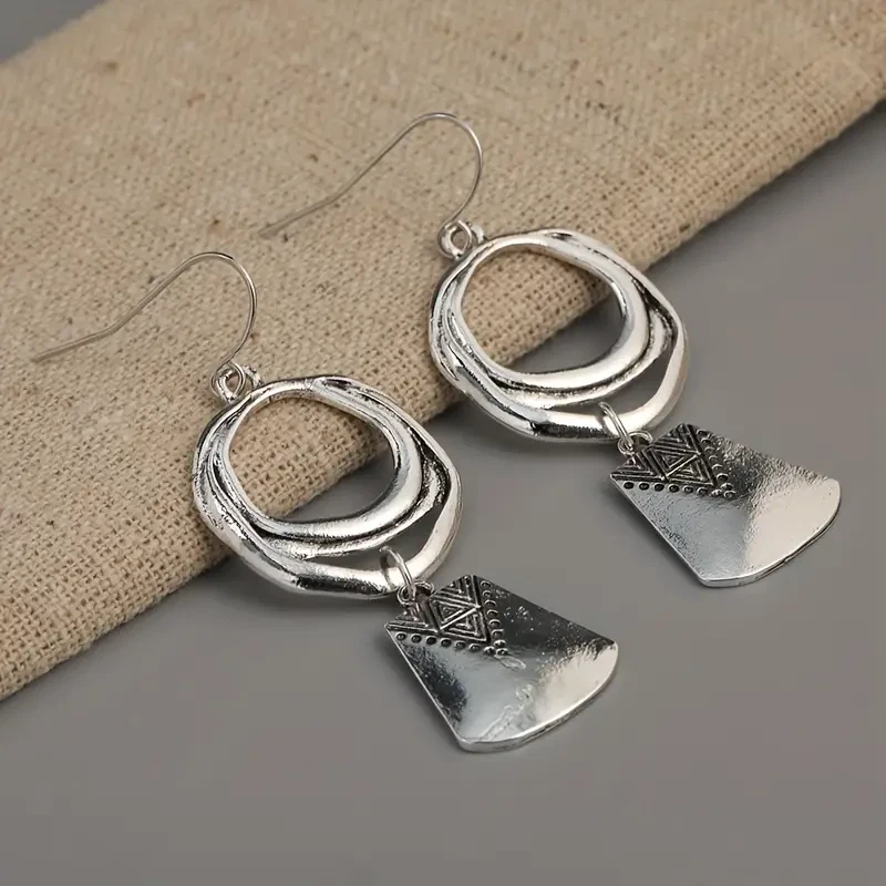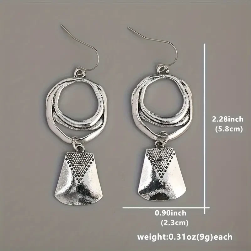 Vintage Boho Silver Plated Retro Pendant Circle Earrings Lightweight Women Gift