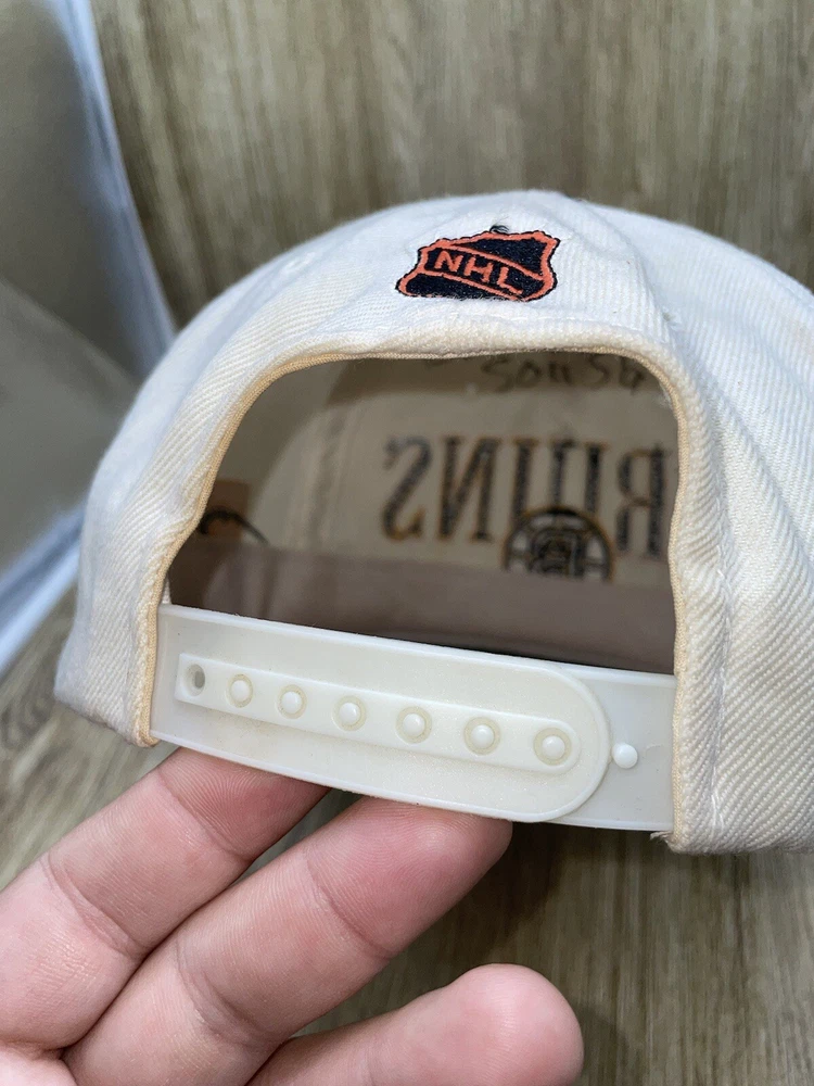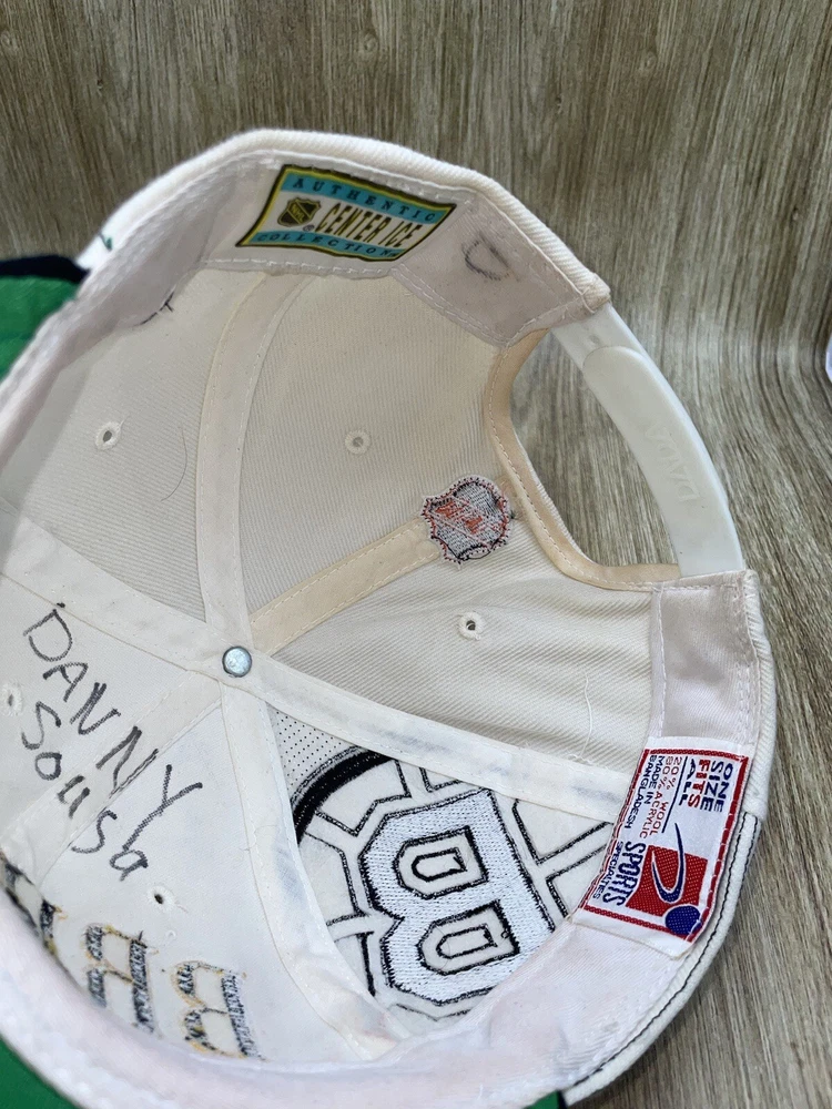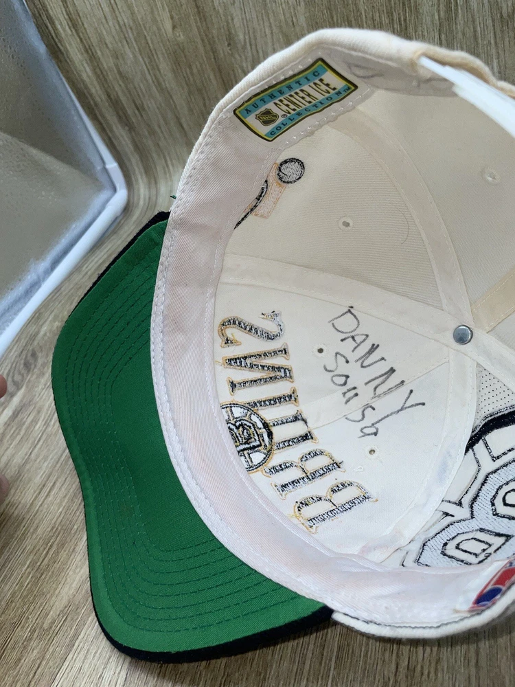 Nice hat autographed not sure on the players shipped secure box The product is a vintage Boston Bruins Sports Specialties snapback hat that is officially licensed by the National Hockey League (NHL). It features the team's colors and logo, making it a great item for fans to show their support. The hat is autographed, adding to its collectible value and appeal to fans looking for unique memorabilia from the Boston Bruins. Made in Bangladesh, this unisex adult-sized cap is a perfect addition to any hockey fan's collection.