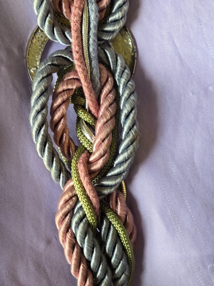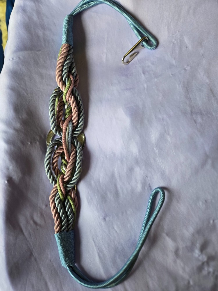 Vintage Statement BOHO Braided Belt Blue, Rose Pink, Silver waist 22-35" mildly elastic The elegantly braided colors , with silver coated center adornment make a UNIQUE Fashion statement. The interwined rope braid is slightly elastic. A silver coated clasp joins the back of the belt. The colors lean toward Pastel and Springtime ~ 30-day return policy for all our items! If the item, you received didn’t prove your expectation – simply send it back! Shipping cost will be refunded only if item not as described.