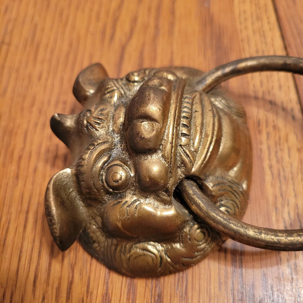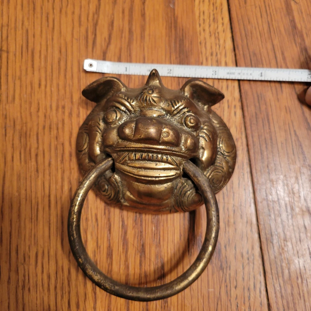 Vintage Brass Fengshui Lion Foo Dog Guardian Head Door Knocker. See pics for condition