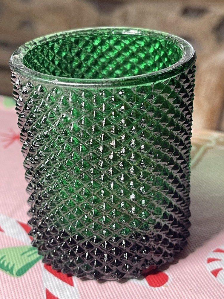 Era: Late 20th Century (1970-1999) Size: Small Item Length: 3 in Color: Green Original/Reproduction: Original Item Height: 3 in Type: Candle Holder Brand: Red Shape: Round Style: Vintage Classic Occasion: Christmas Country of Origin: Taiwan Material: Glass Finish: Glossy
