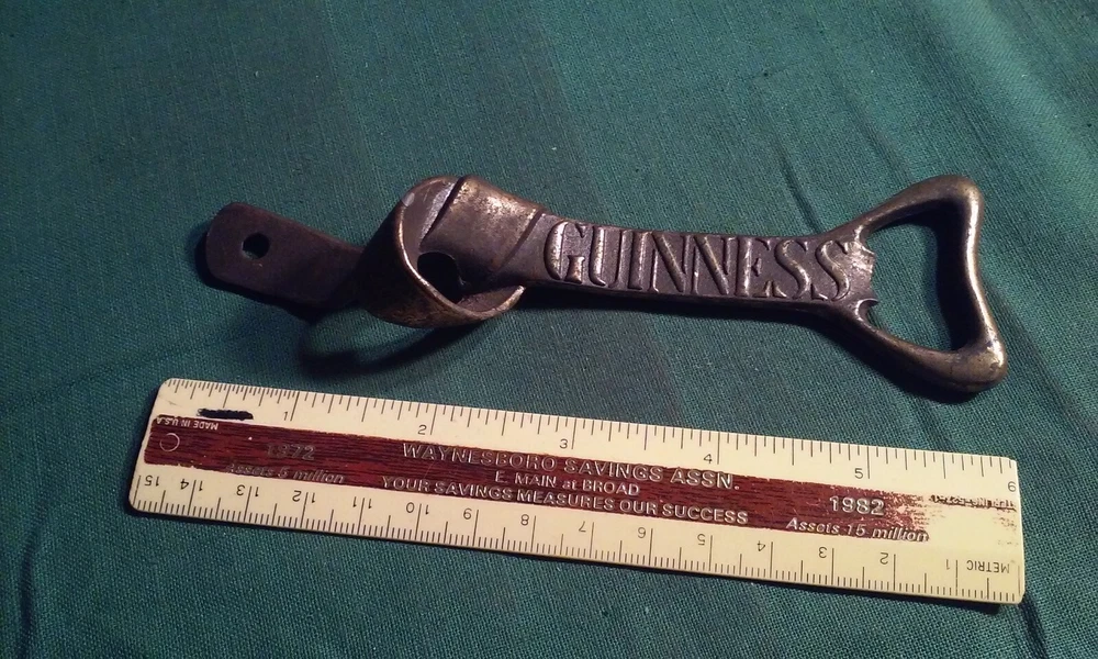 Vintage Brass Guinness Twisted Knot Brass Bottle Opener Bar Man Cave Beer 6"Inch, w/ Hole for hanging on nail.