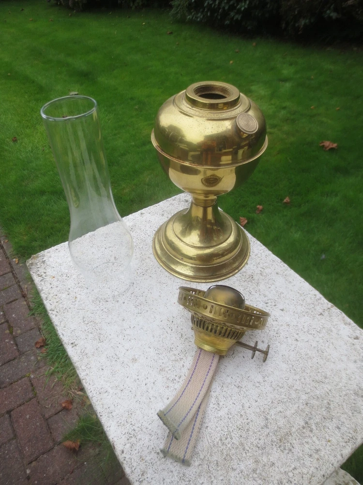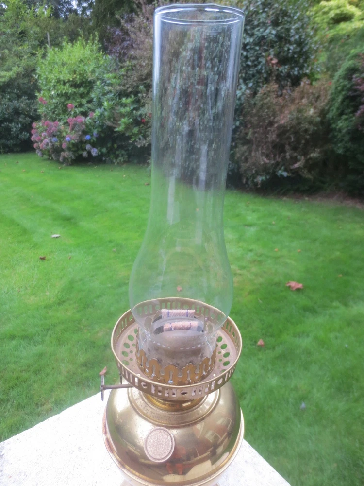 UP FOR AUCTION IS THIS OLD VINTAGE BRASS TABLE OIL LAMP, COMPLETE WITH CHIMNEY. THE LAMP IS COMPLETE AND FULLY WORKING. BRASS BASE AND FONT BRASS FONT WITH REMOVABLE FILLER CAP ENGLISH MADE TWIN DUPLEX BURNER IT HAS FULLY WORKING WICK WINDERS AND HAS SOME WICK STILL IN IT ROUND BULGE CHIMNEY THE LAMP WILL BE WELL PACKED THERE ARE AGE RELATED MARKS, DENTS, SPLITS AND IMPERFECTIONS ASSOCIATED WITH ANTIQUE PARTS. PLEASE NOTE, ANTIQUES WHICH ARE MANY YEARS OLD WILL NOT BE IN BRAND NEW AND UNTOUCHED CONDITION. ANY MAJOR DAMAGE OR FAULTS I WILL TRY AND POINT OUT. EVEN WHEN THEY ARE IN GREAT CONDITION, THEY WILL HAVE SOME WEAR COMMENSURATE WITH THEIR AGE AND USE. PLEASE TAKE THIS INTO ACCOUNT. . FOR THE CORRECT OVERSEAS POSTAGE PLEASE CONTACT ME AS ALL DESTINATION PRICES VARY THERE IS SOME WICK WITH THE LAMP.